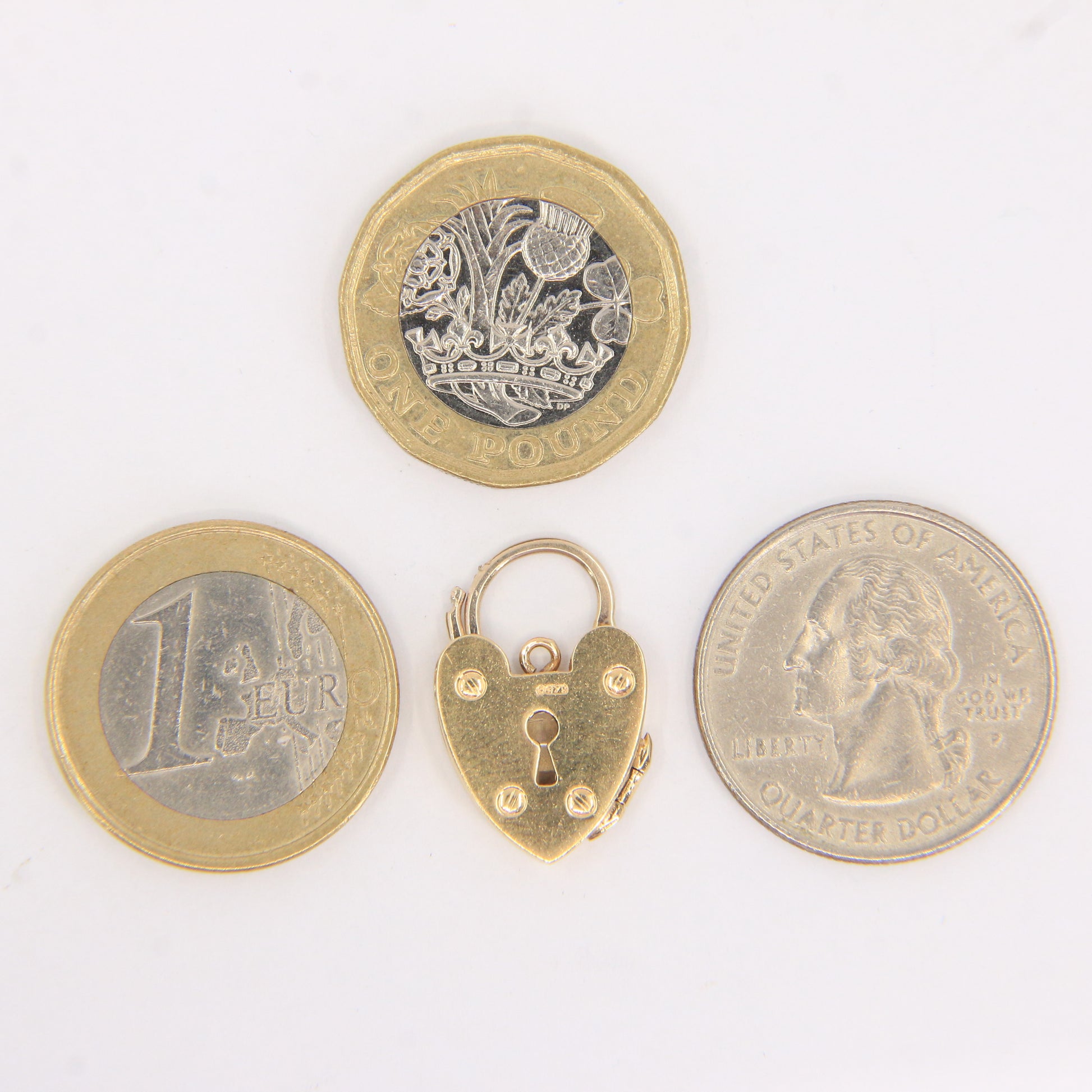 A rare vintage 9ct yellow gold heart-shaped padlock locket, hallmarked and beautifully crafted. Opens to reveal a hidden compartment for a small photo — a charming and collectible keepsake.