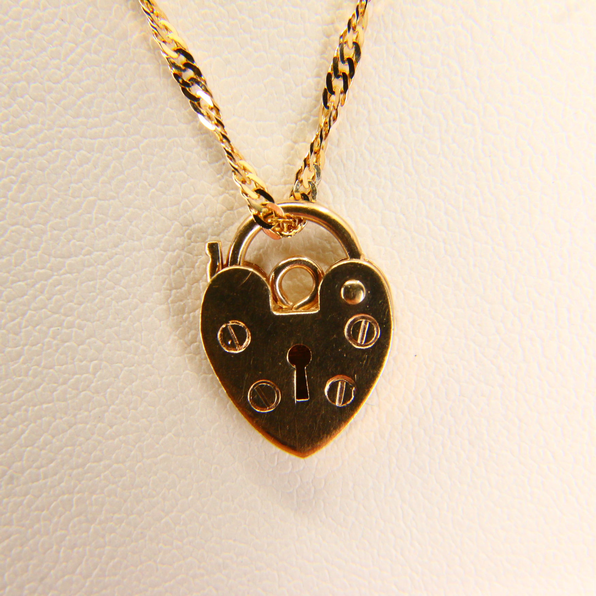 Vintage 9ct Heart Lock Pendant Necklace 19 Inch Yellow Gold Hallmarked Boxed