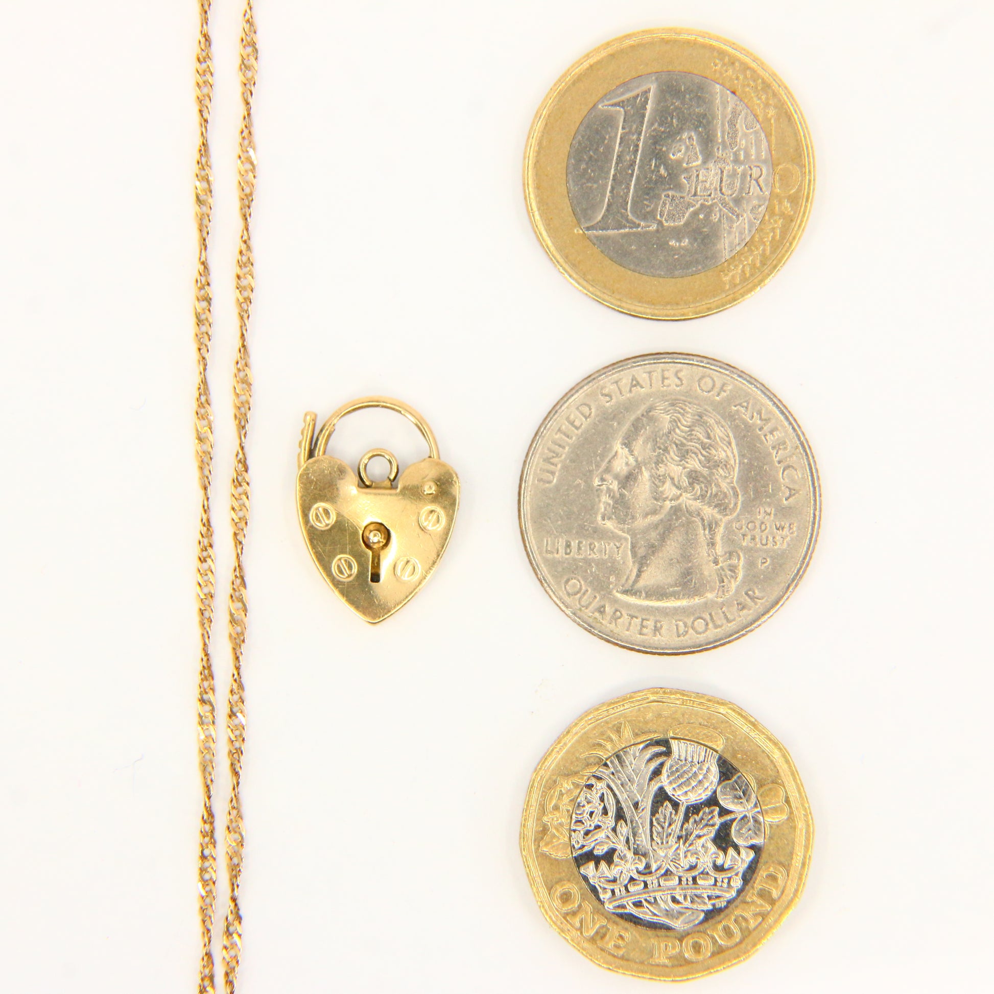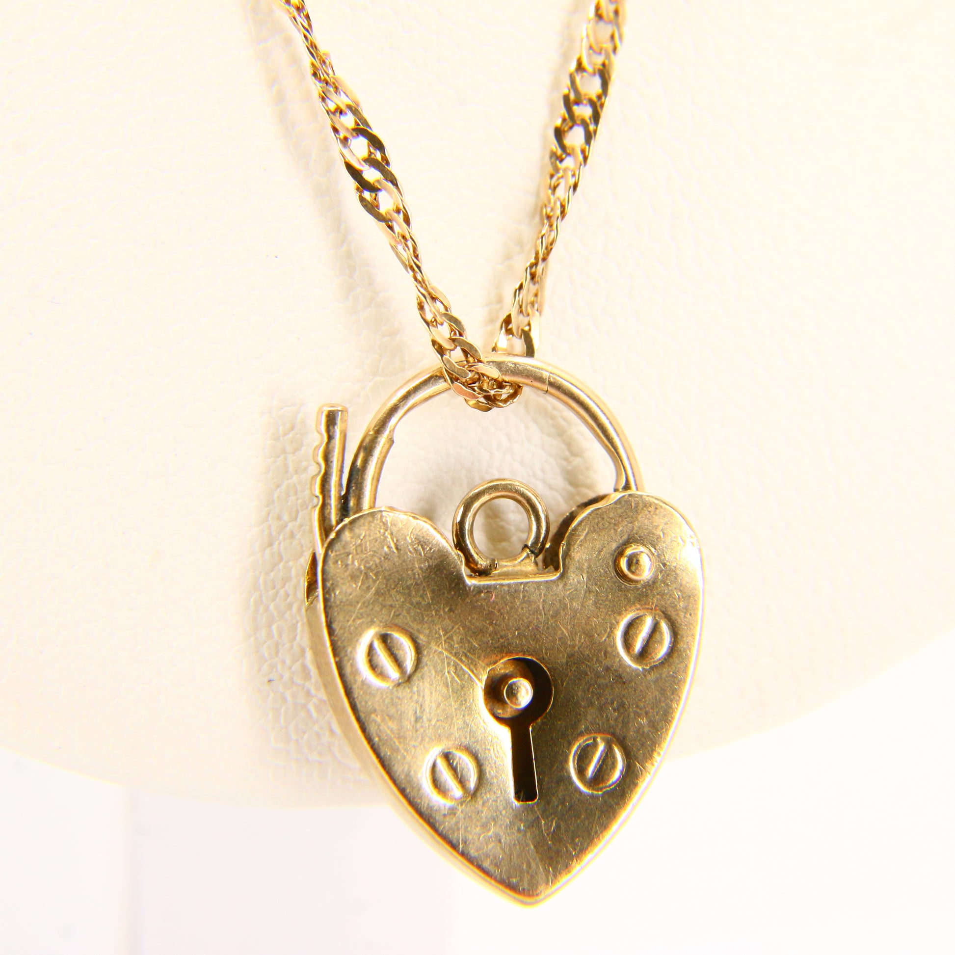 Vintage 9ct Heart Lock Pendant Necklace Yellow Gold Hallmarked Chain Necklace Boxed