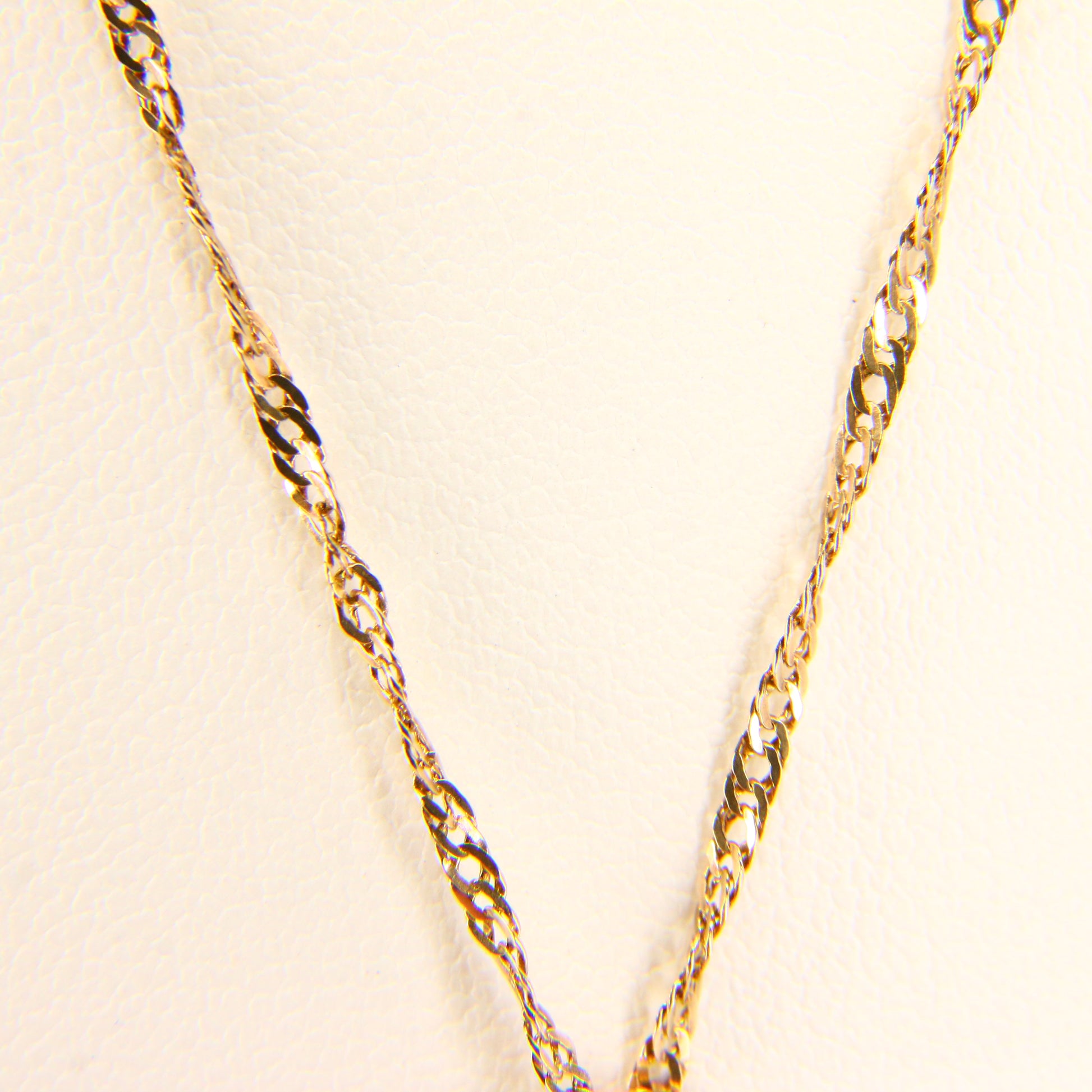Dimensions: chain is 21 inches long pendant is 18 mm tall, 13 mm wide, 2.5 mm thick,