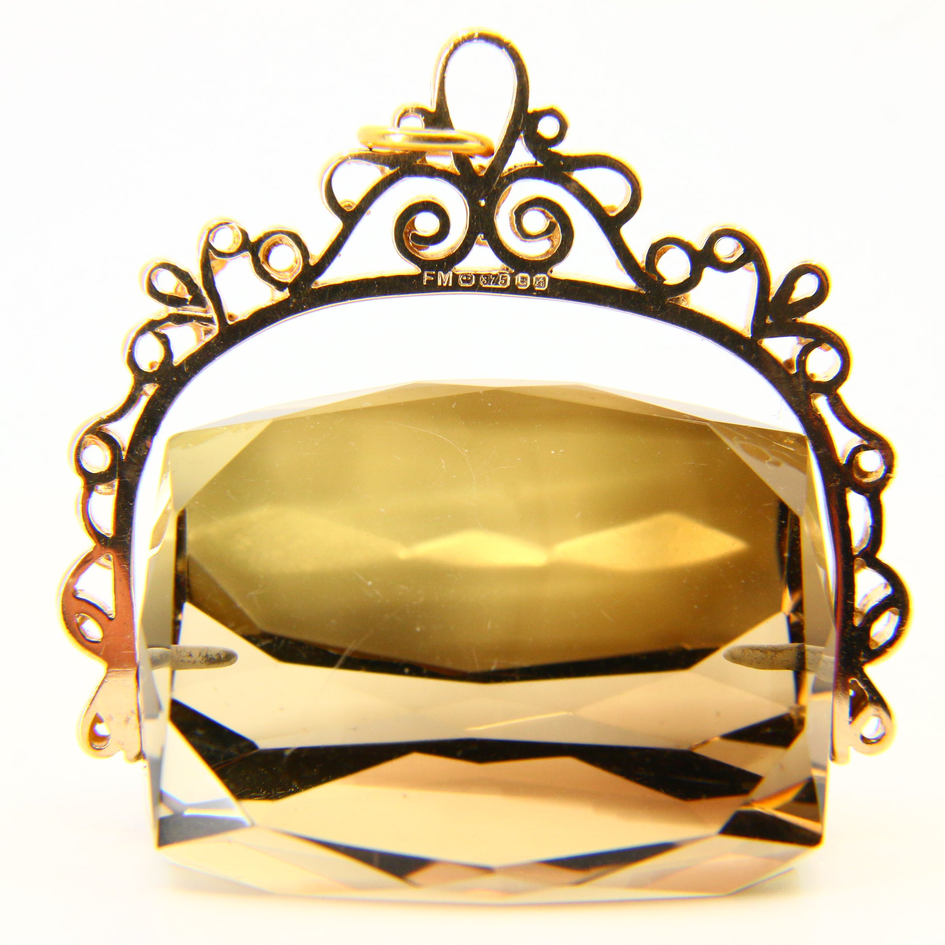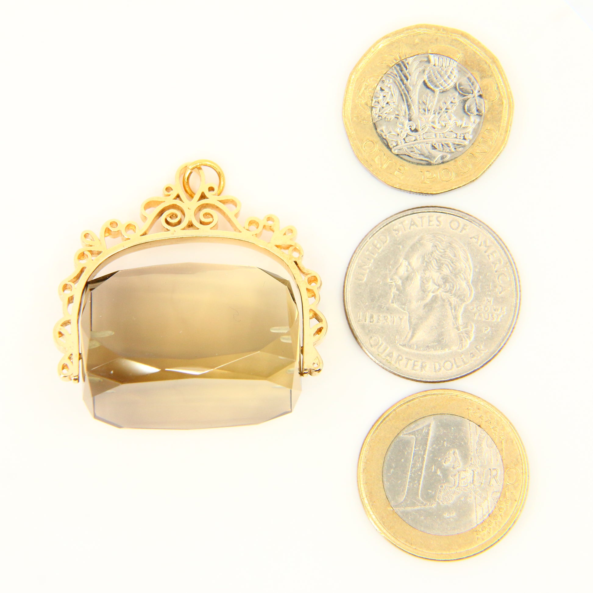 Vintage 9ct Large Citrine Spinner Pendant Yellow Gold Hallmarked Charm Fob