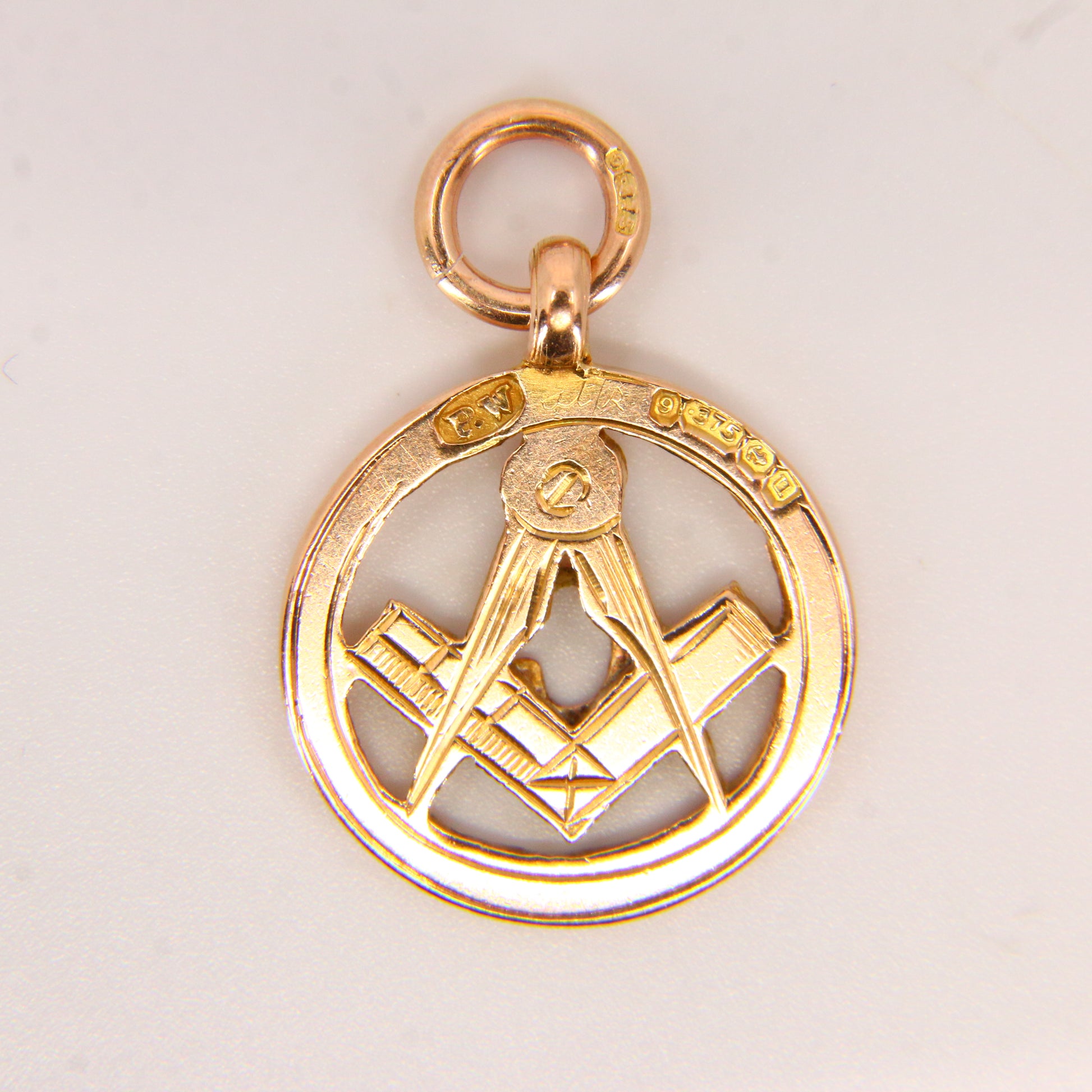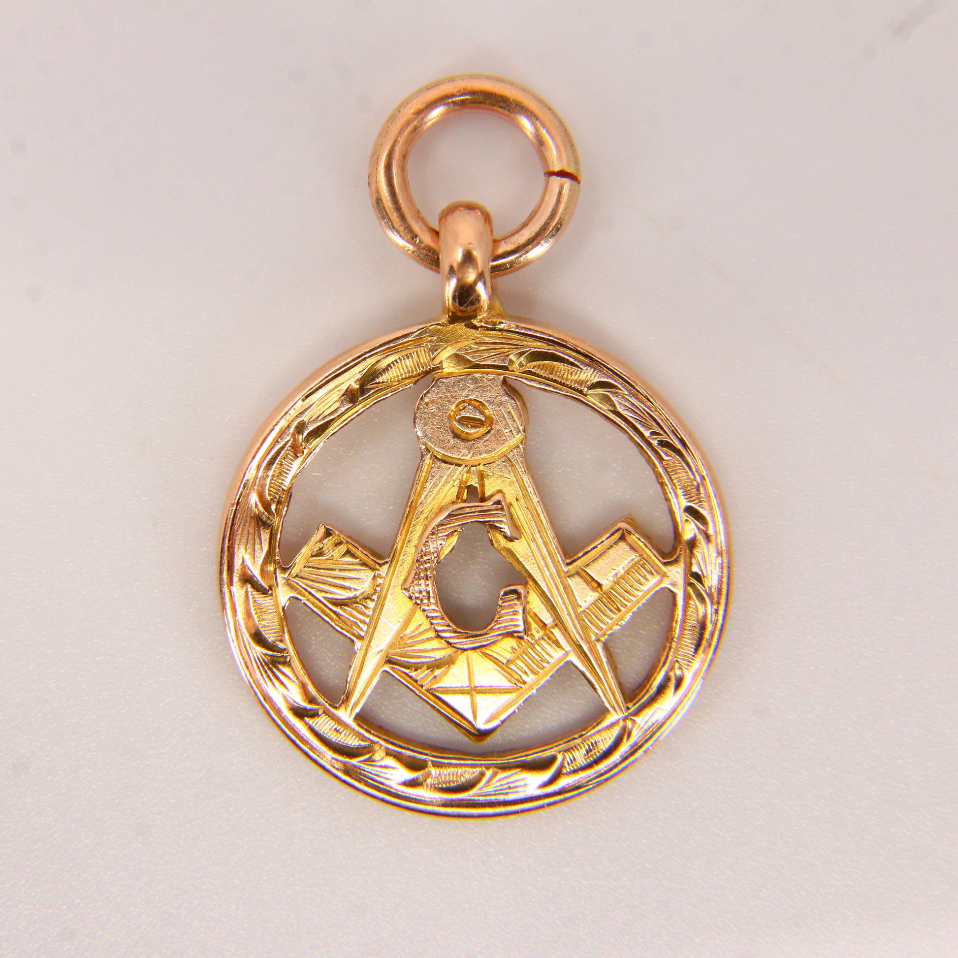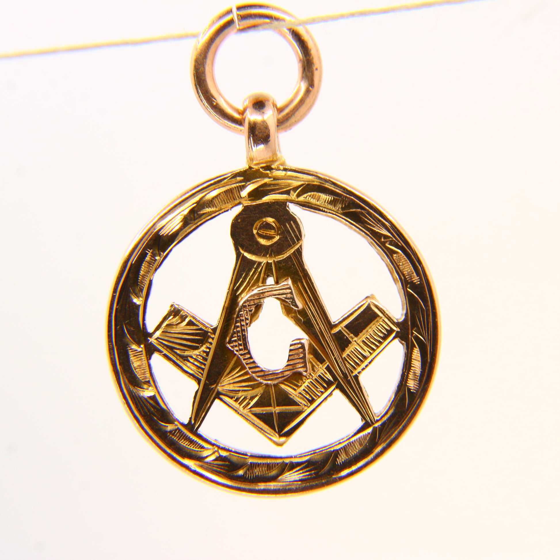 Vintage 9ct Masonic G Pendant Circle Hallmarked Yellow Gold Mason Fob Freemason