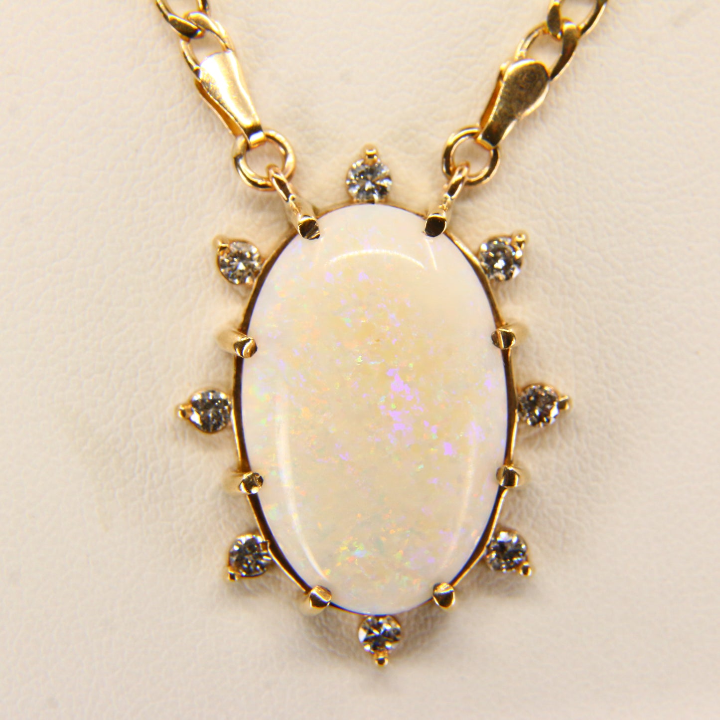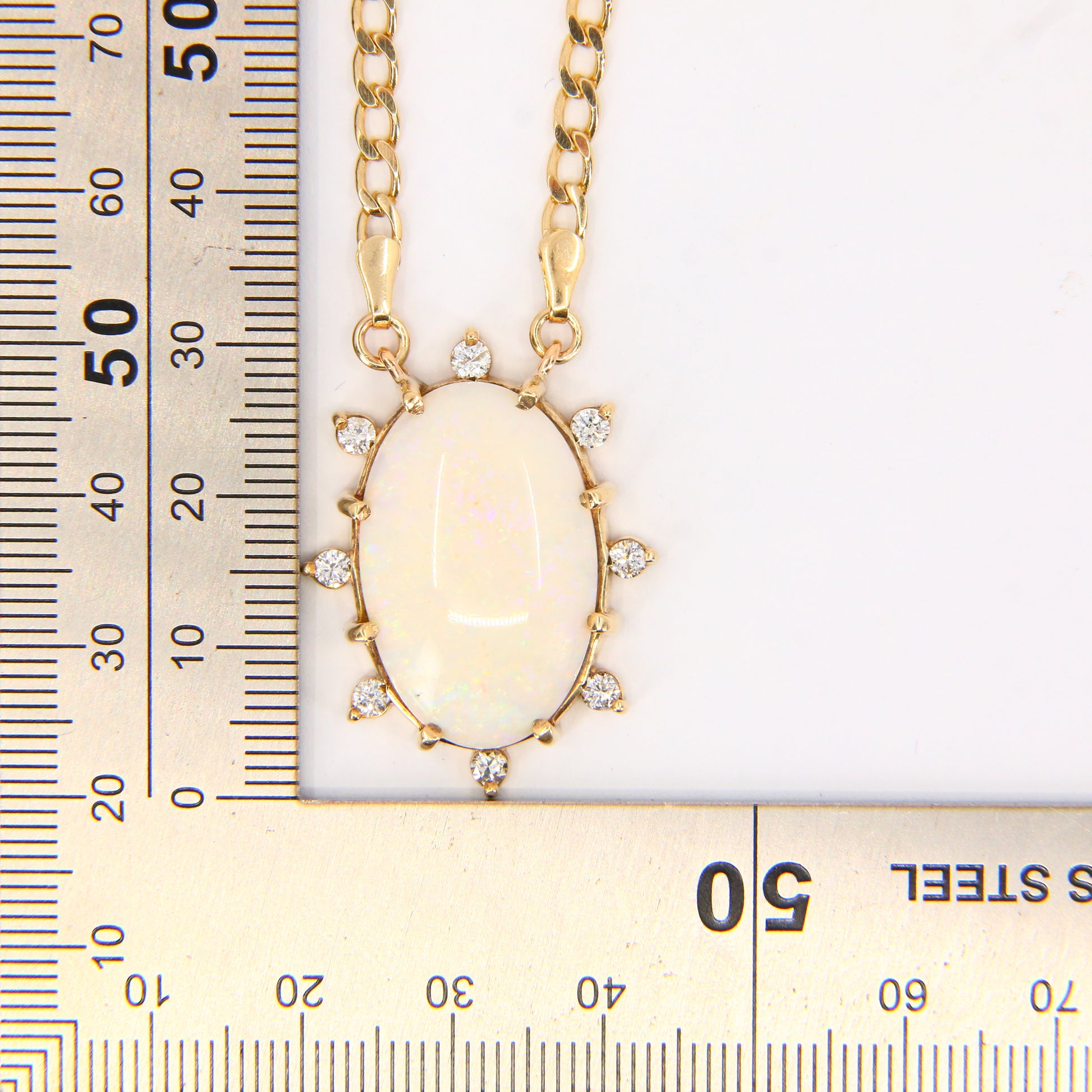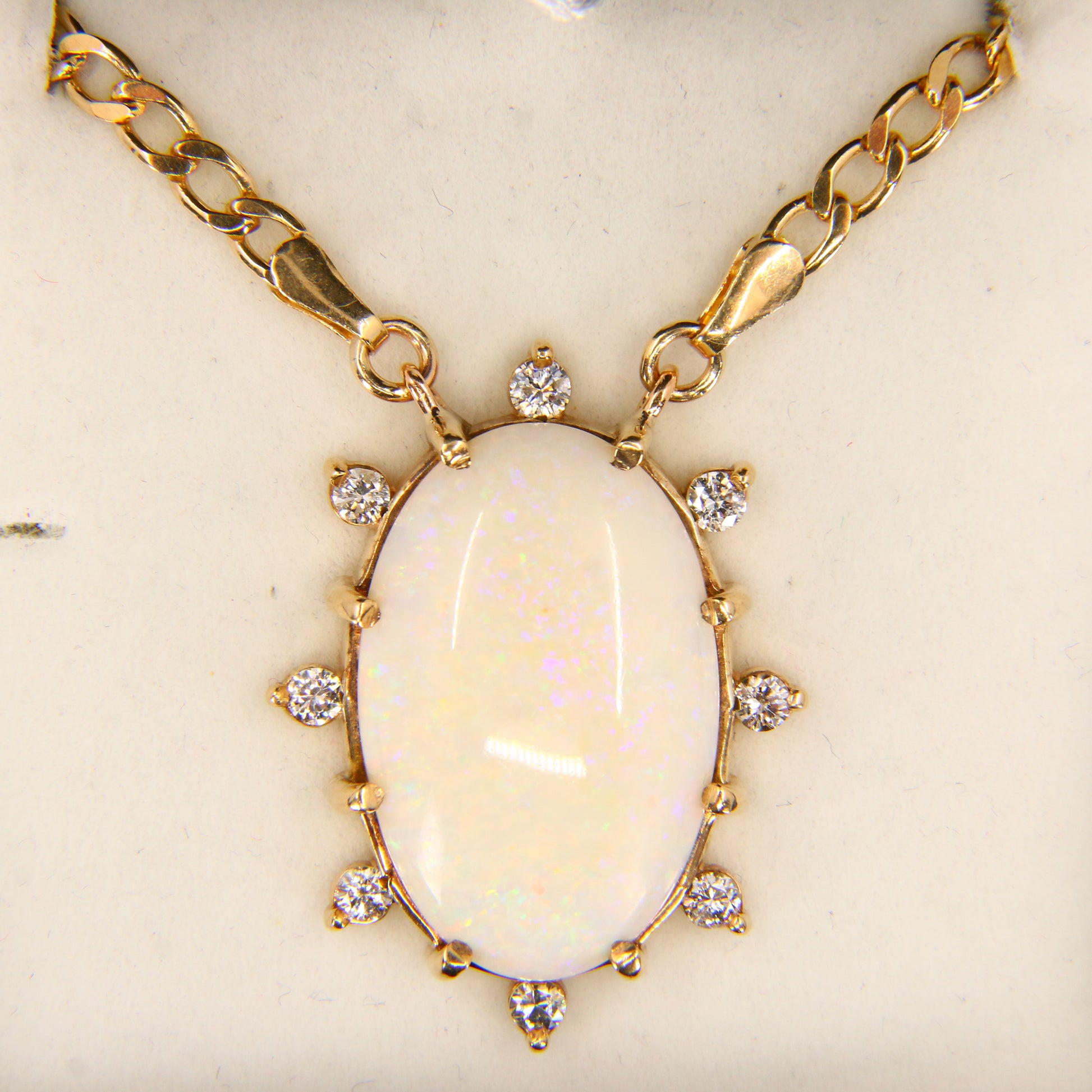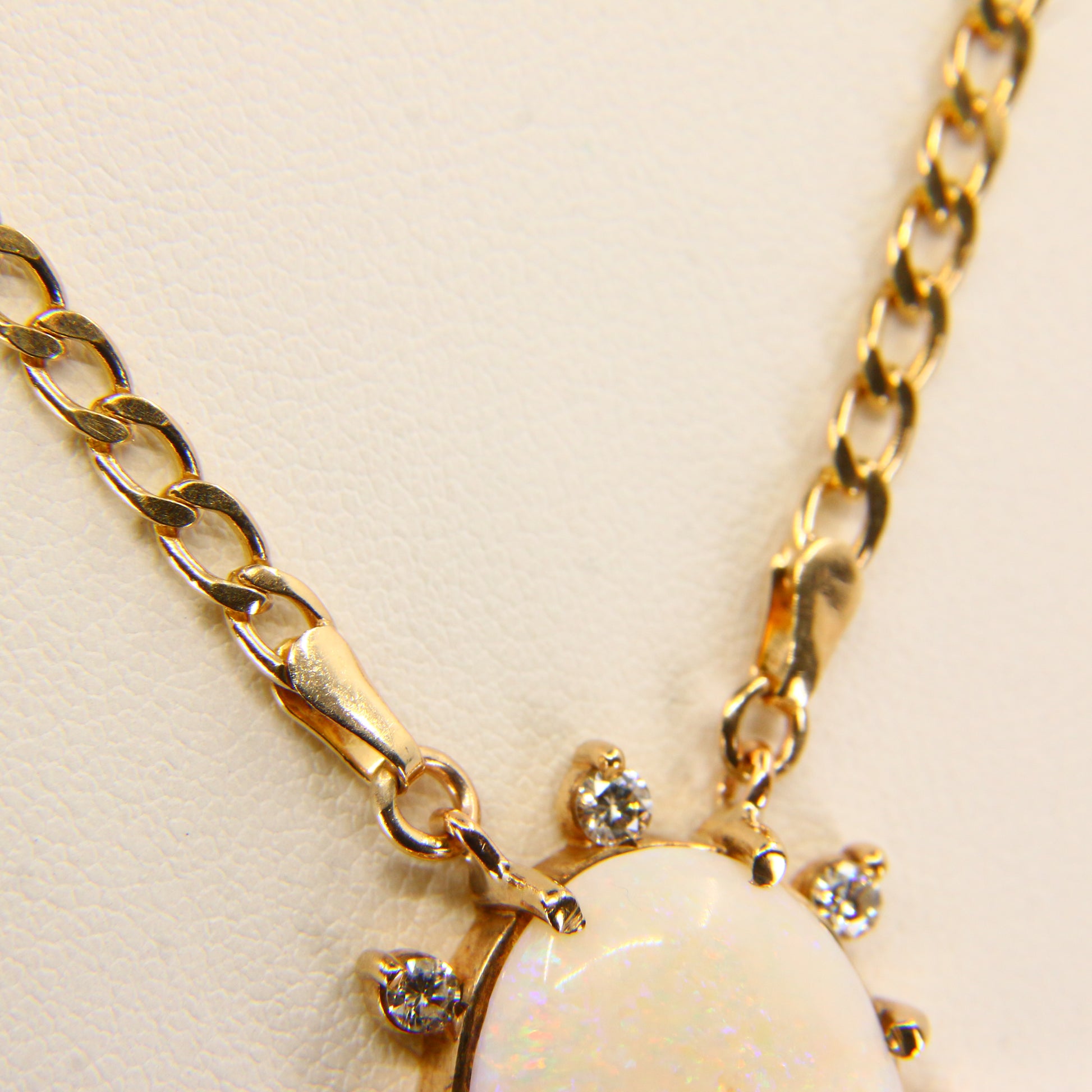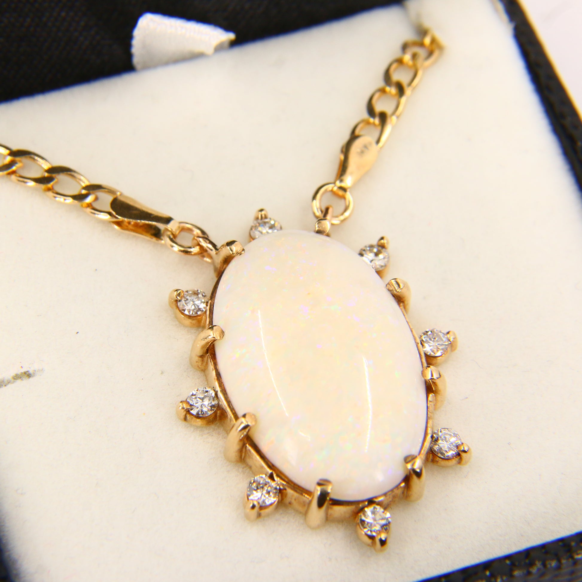 Vintage 9ct Opal CZ Pendant 15 INCH Chain Necklace Hallmarked 9 Carat Yellow Gold Boxed
