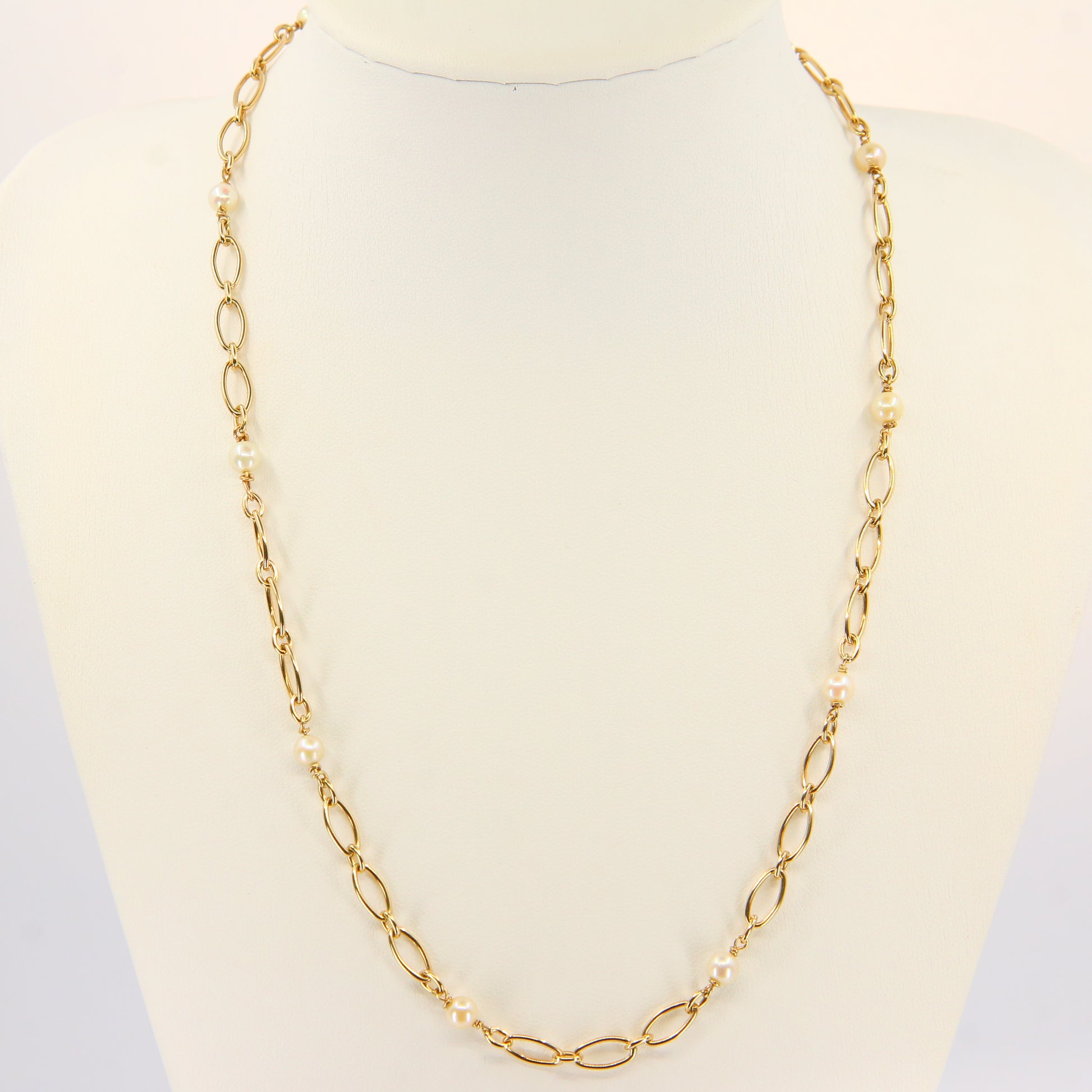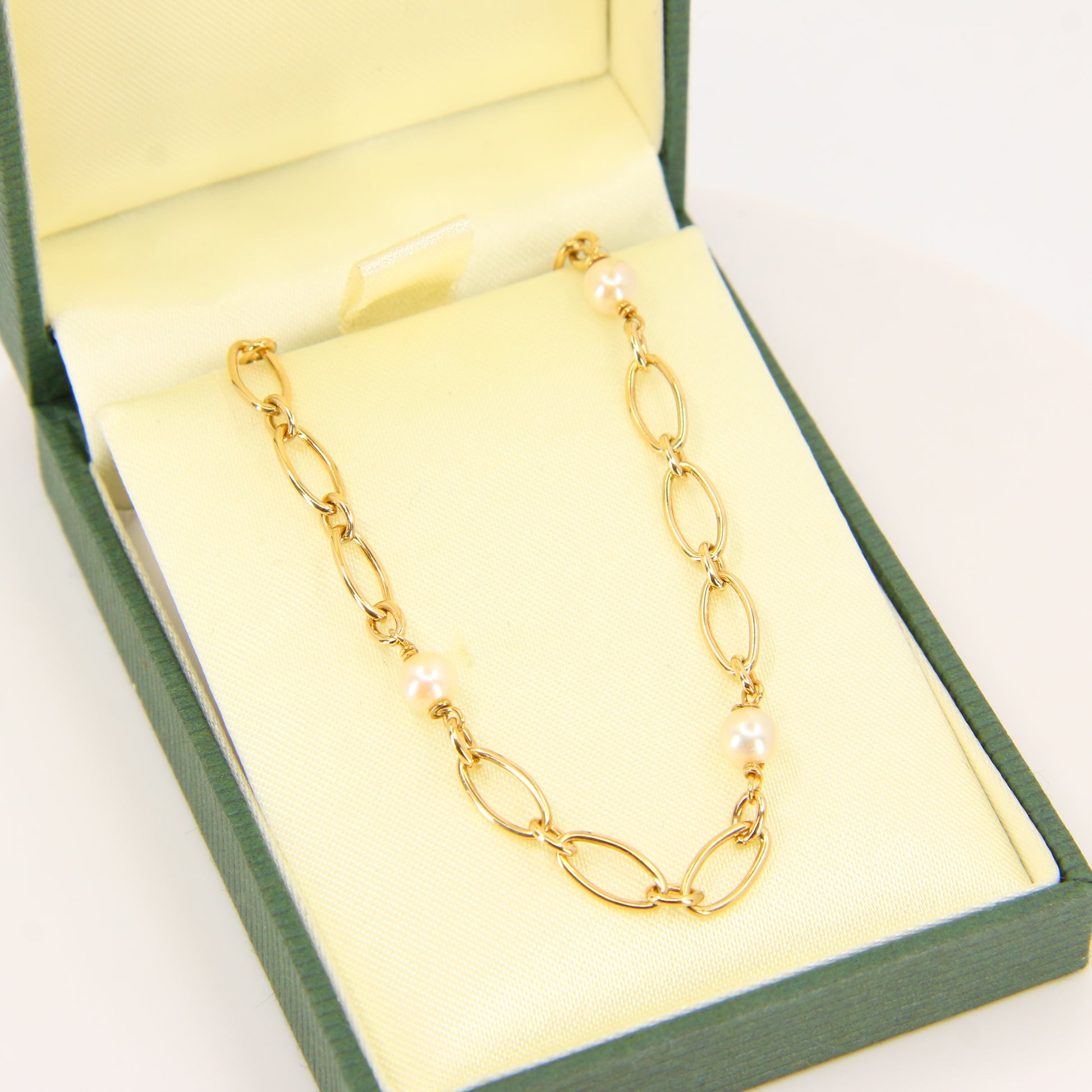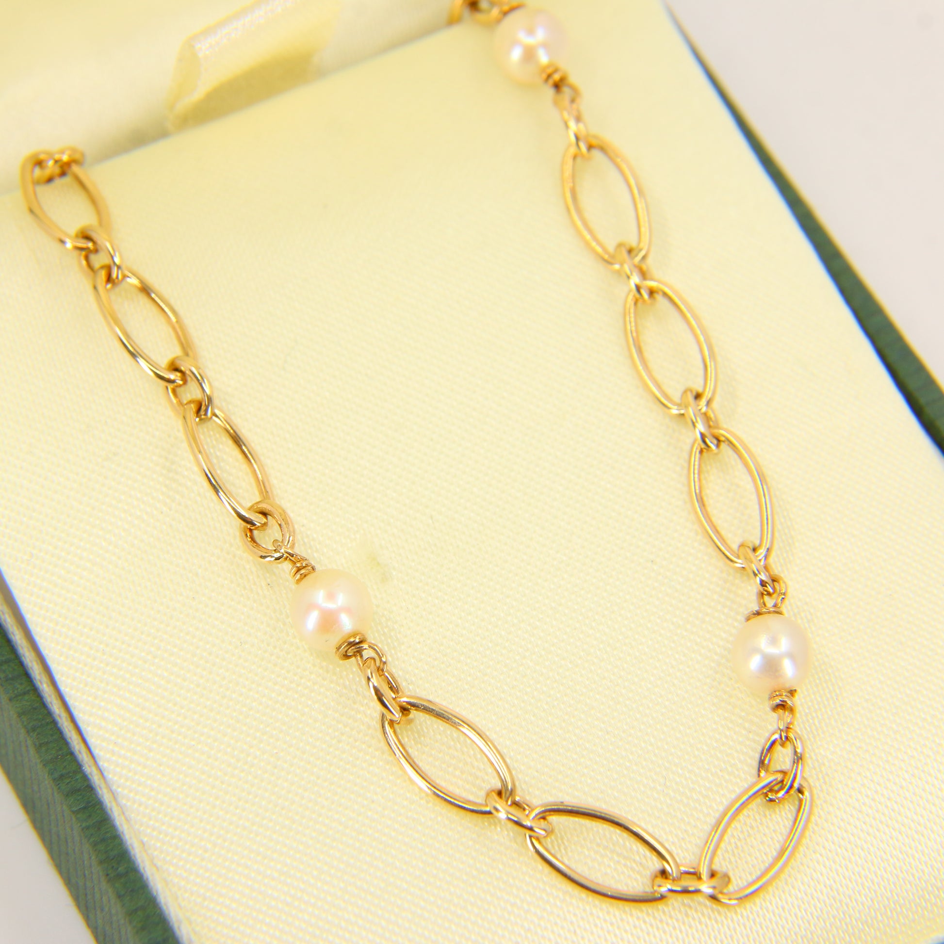 Vintage 9ct Pearl Necklace 18-inch Yellow Gold Figaro Pearl Chain Necklace Hallmarked