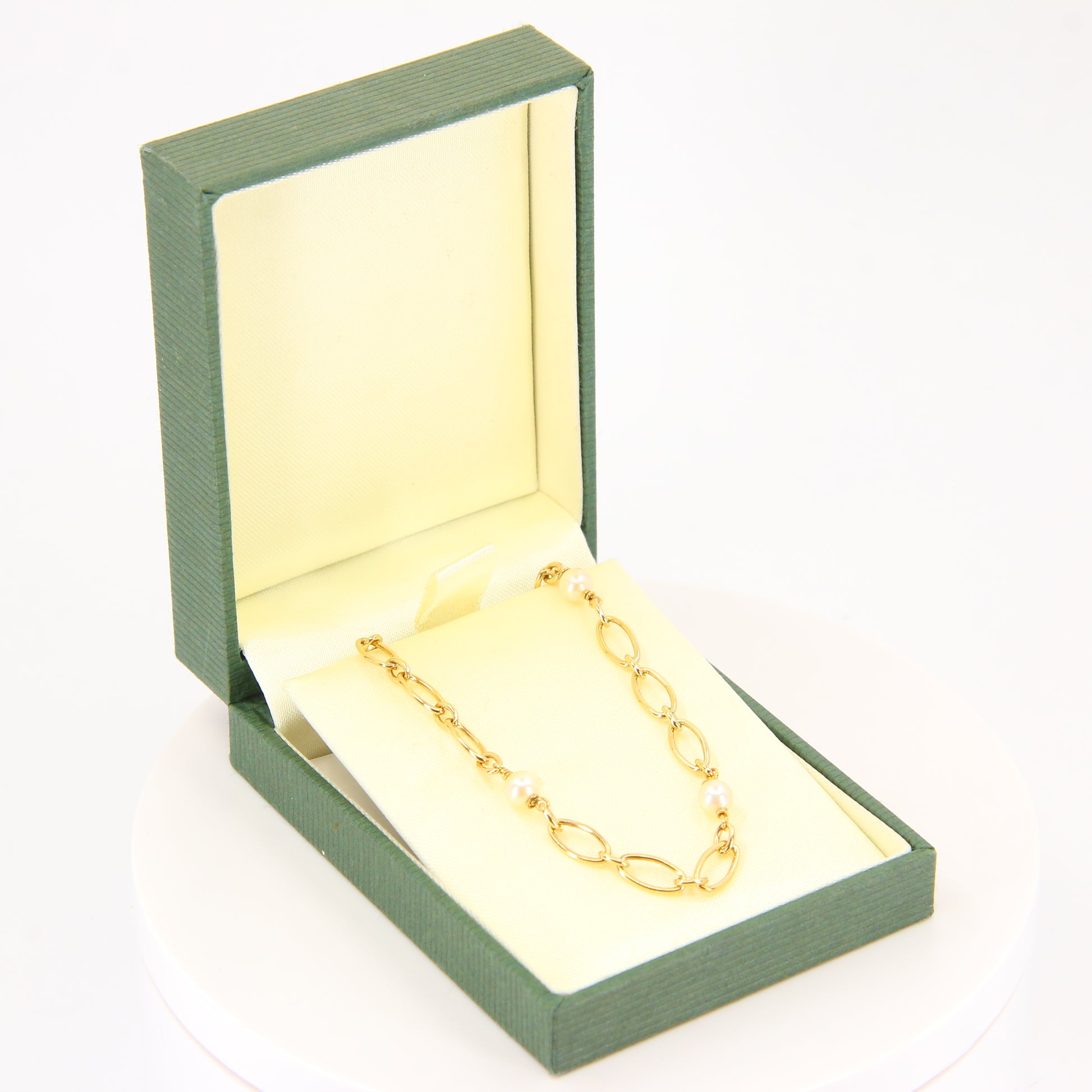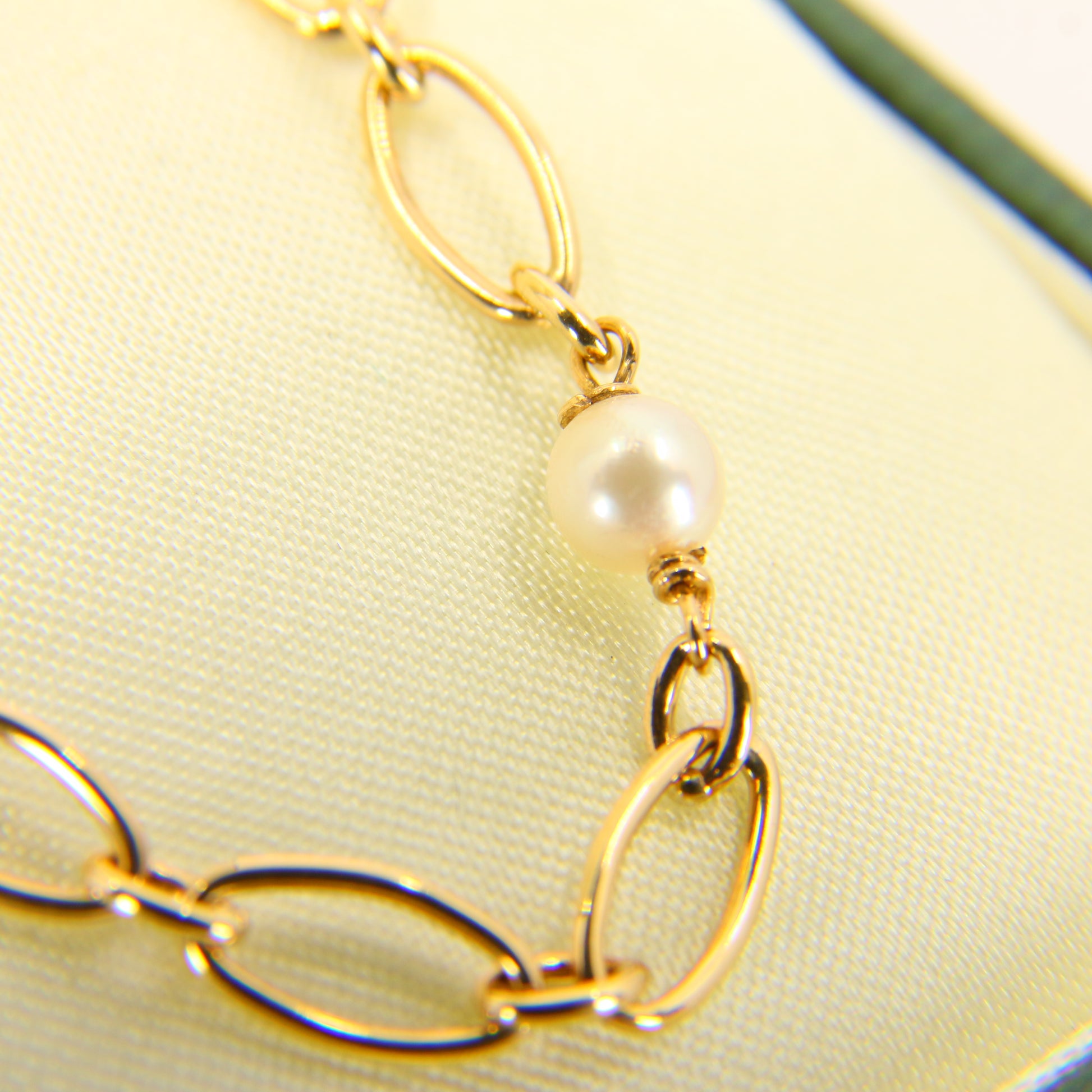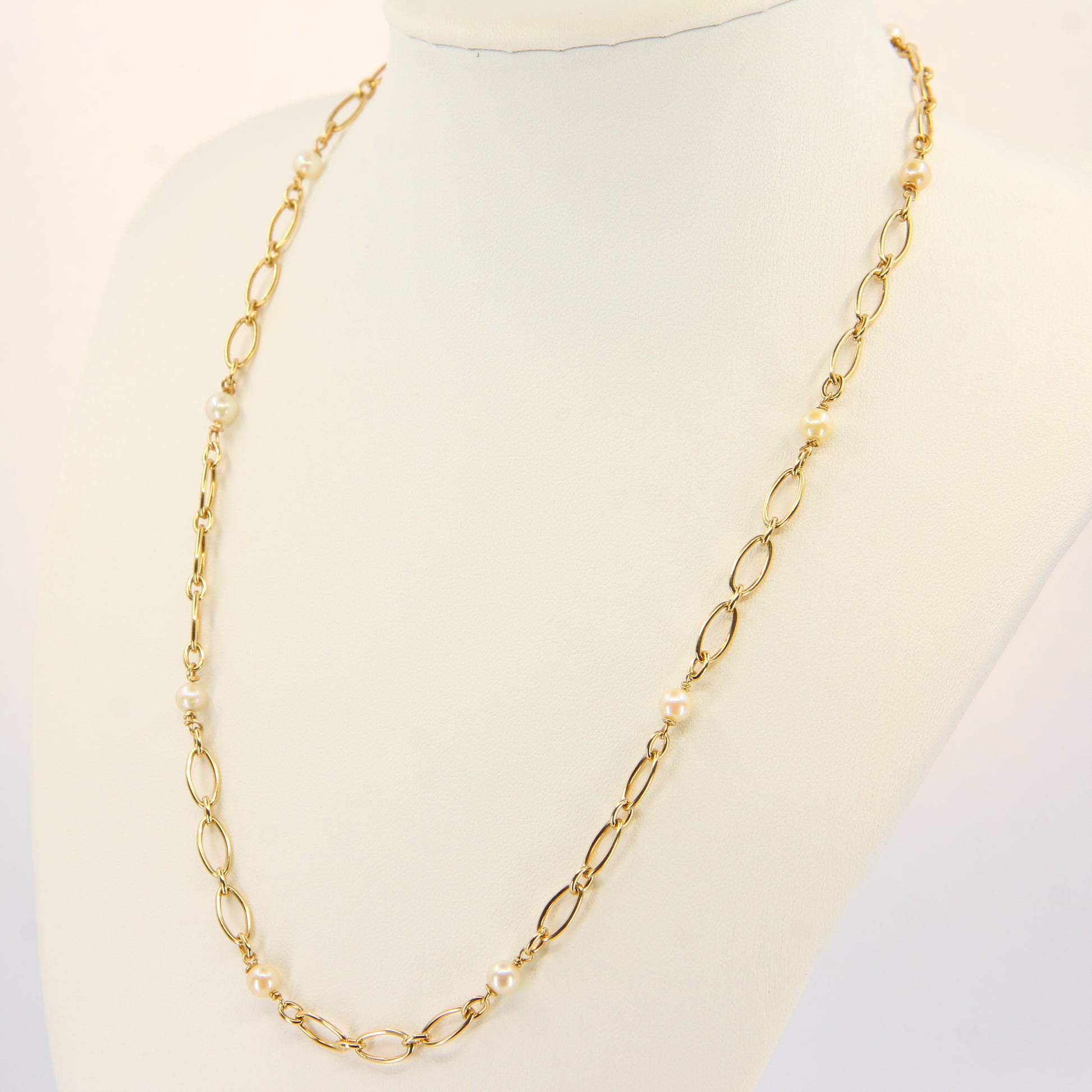 Vintage 9ct Pearl Necklace 18-inch Yellow Gold Figaro Pearl Chain Necklace Hallmarked