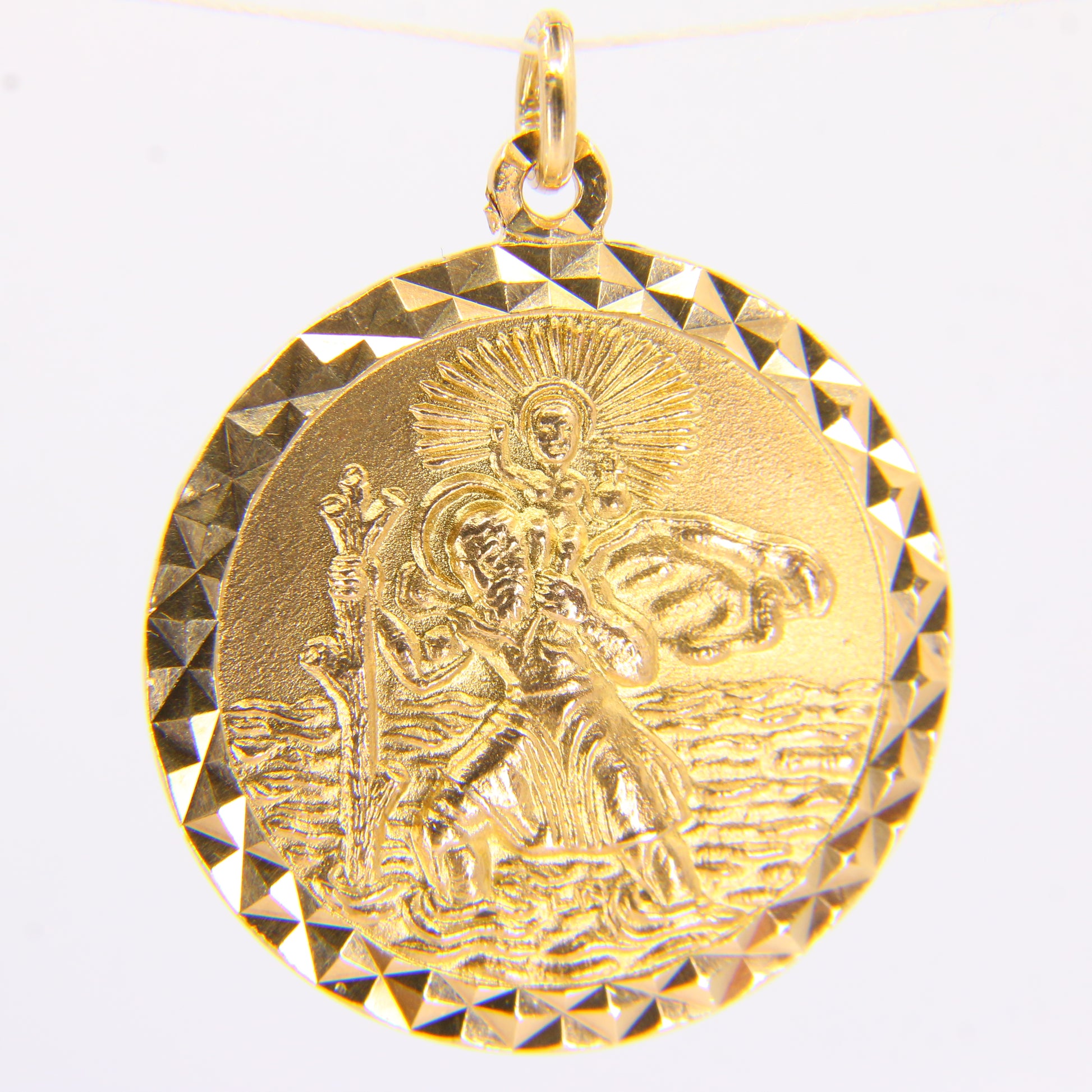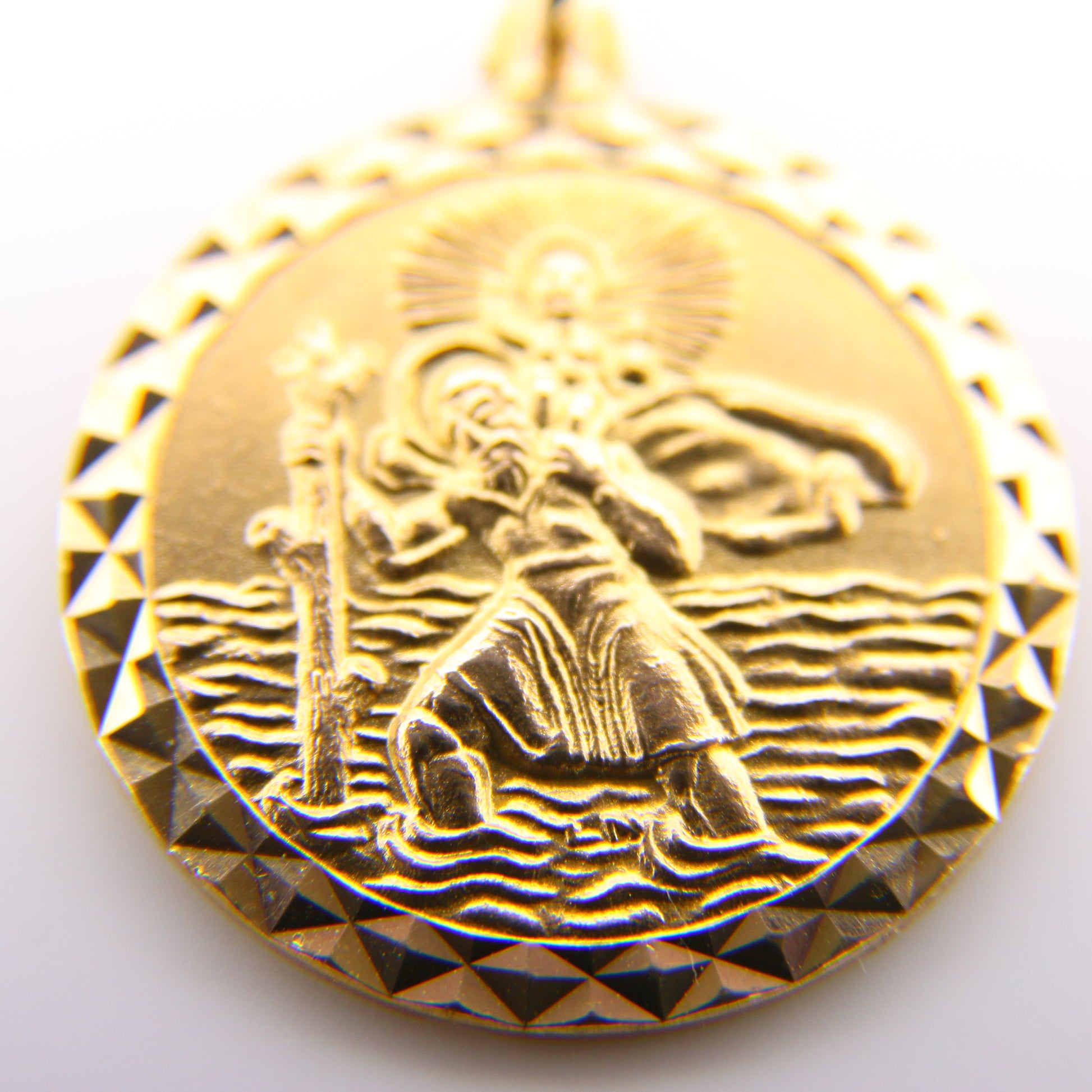 A stunning 9 carat gold pendant of Saint Christopher the patron saint of travellers. A beautiful gift or addition to anyone's collection.