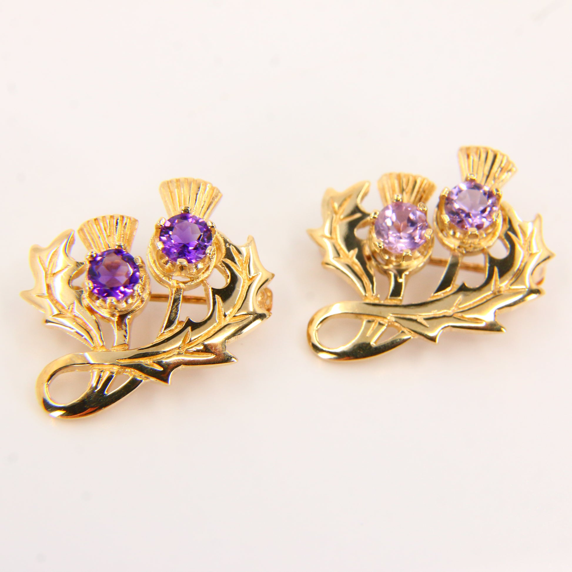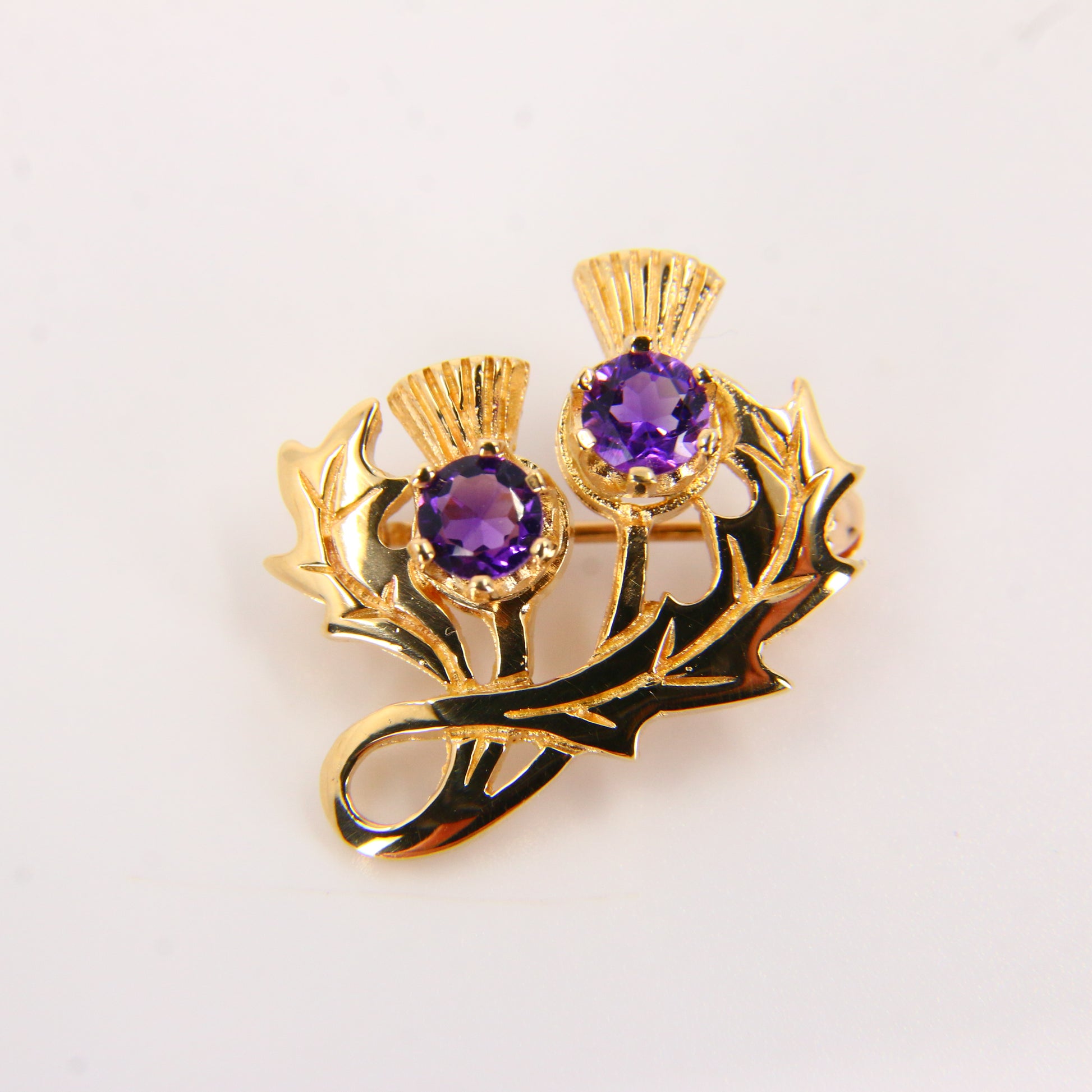 Vintage 9ct Thistle Brooch Hallmarked Solid Yellow Gold Flower of Scotland Gift