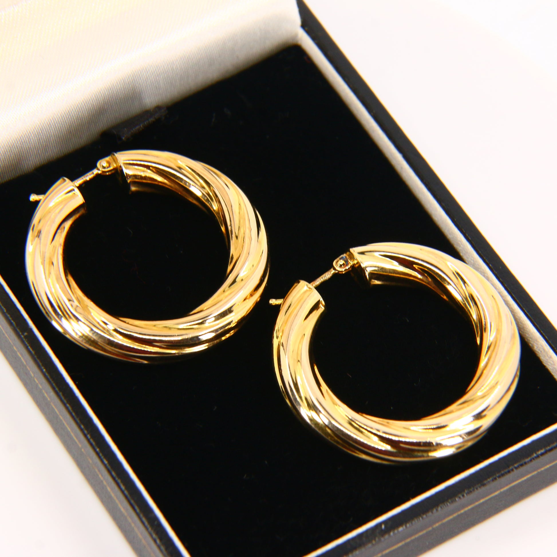 Vintage 9ct Twist Creole Hoop Earrings 9 Carat Hallmarked Yellow Gold Boxed Gift