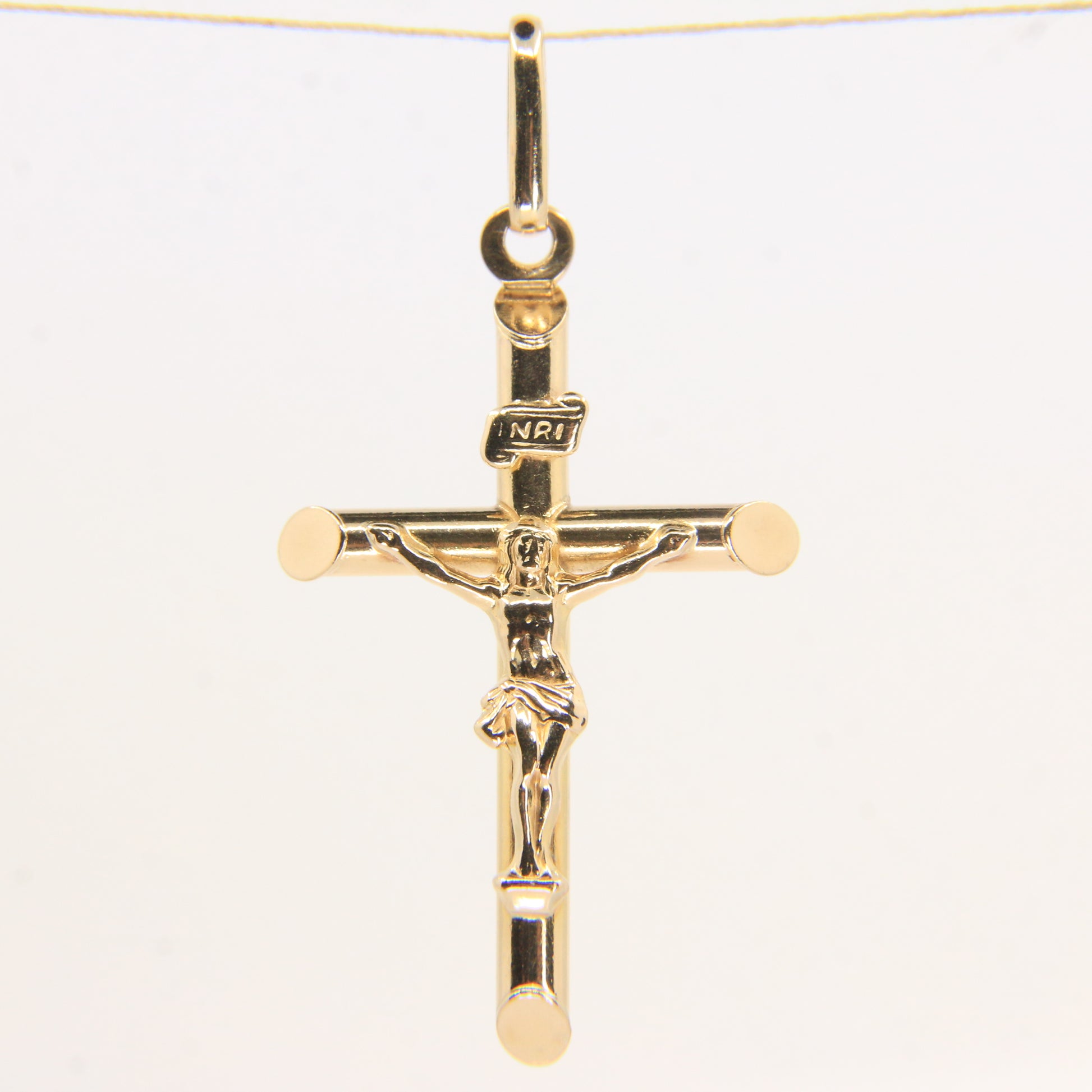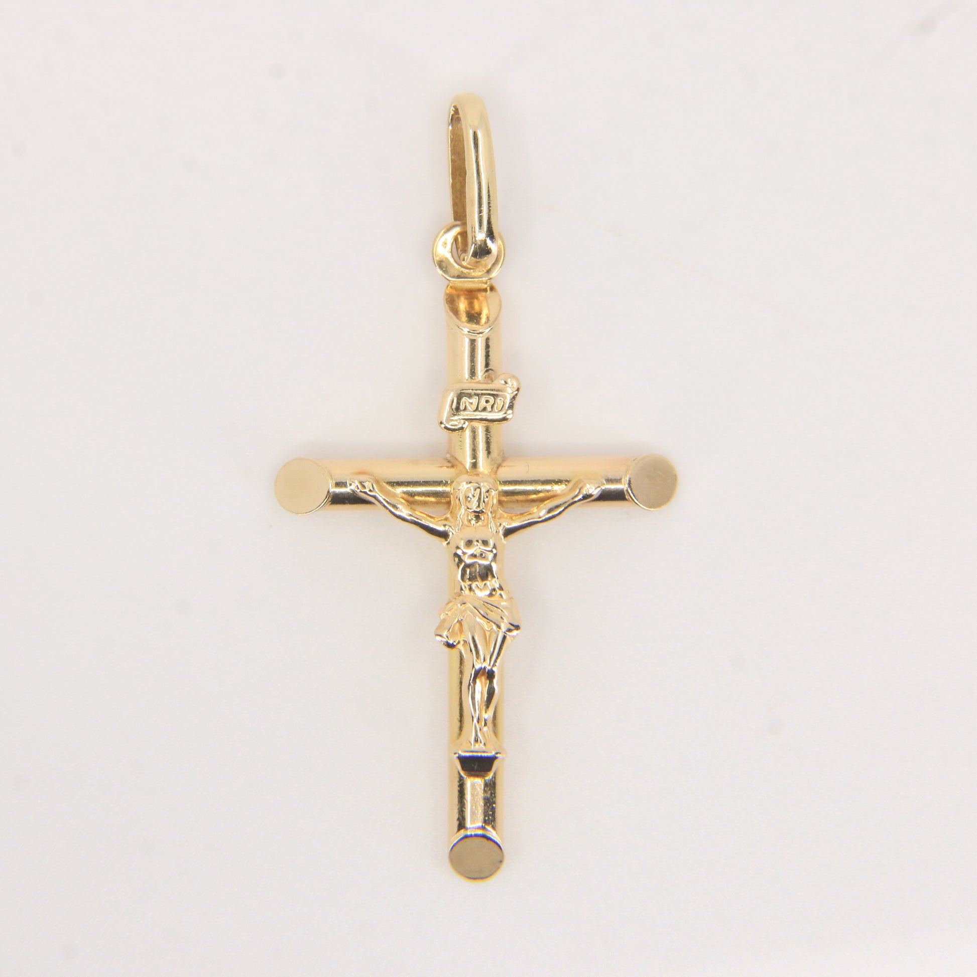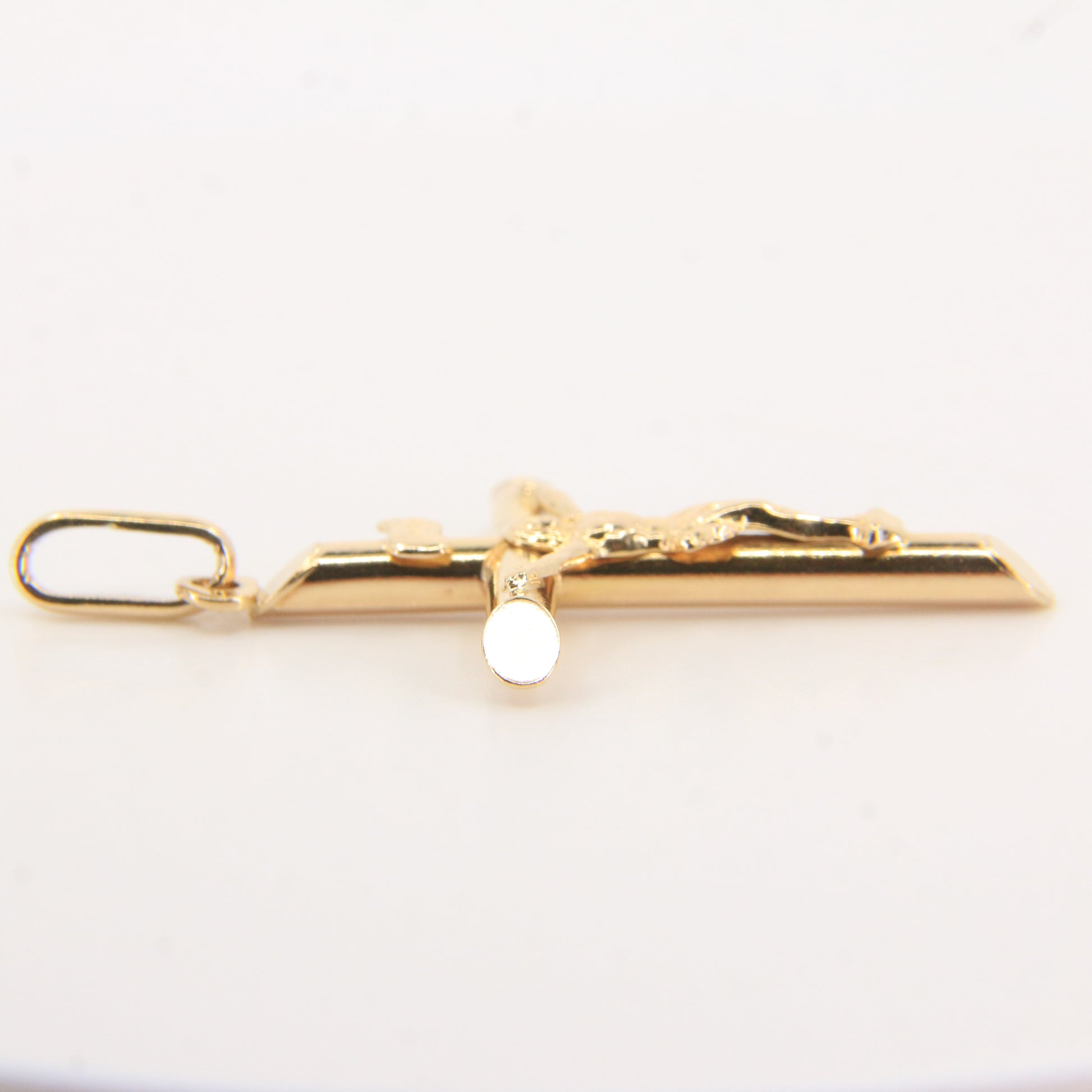 A beautiful vintage 9ct yellow gold crucifix cross pendant featuring fine Italian detailing. A timeless religious charm symbolising faith and devotion, perfect as a meaningful gold gift or addition to any jewellery collection.