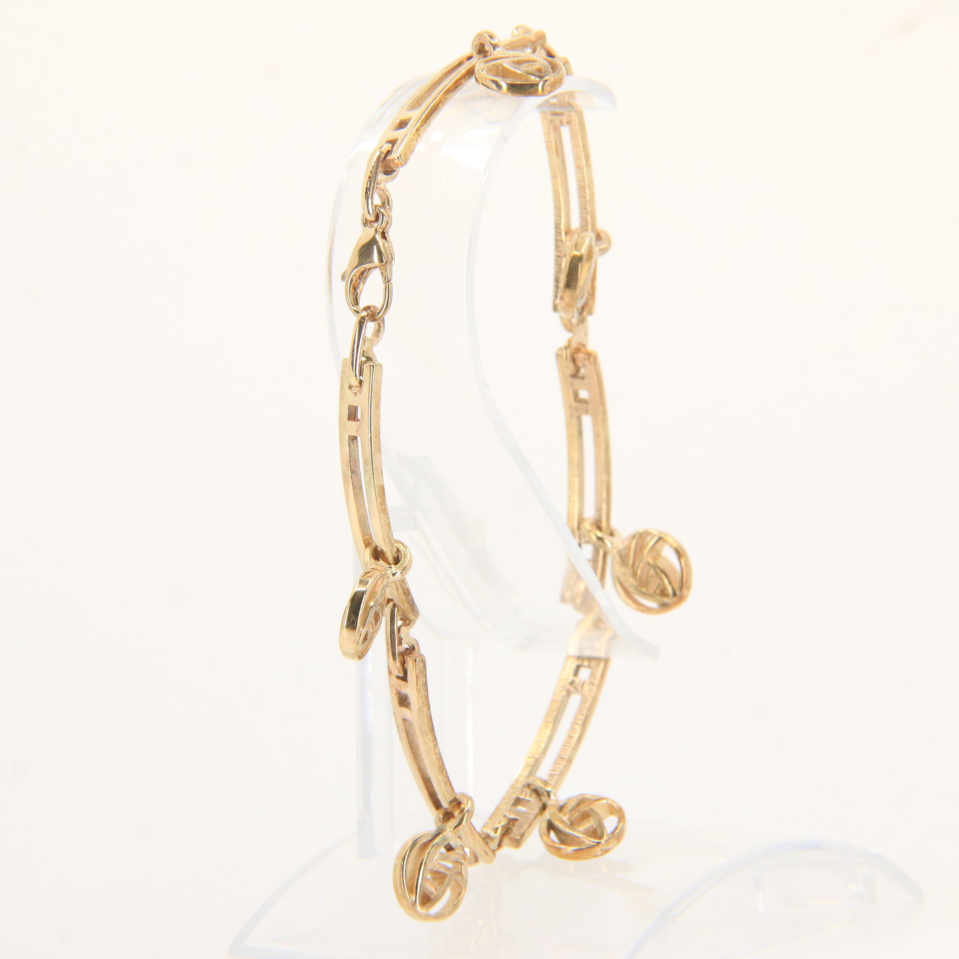 A stunning vintage 9ct yellow gold hallmarked bracelet in the elegant Rennie Mackintosh style, measuring 7.5 inches in length. A refined Art Nouveau design with intricate openwork—perfect for collectors or as a special gold gift.