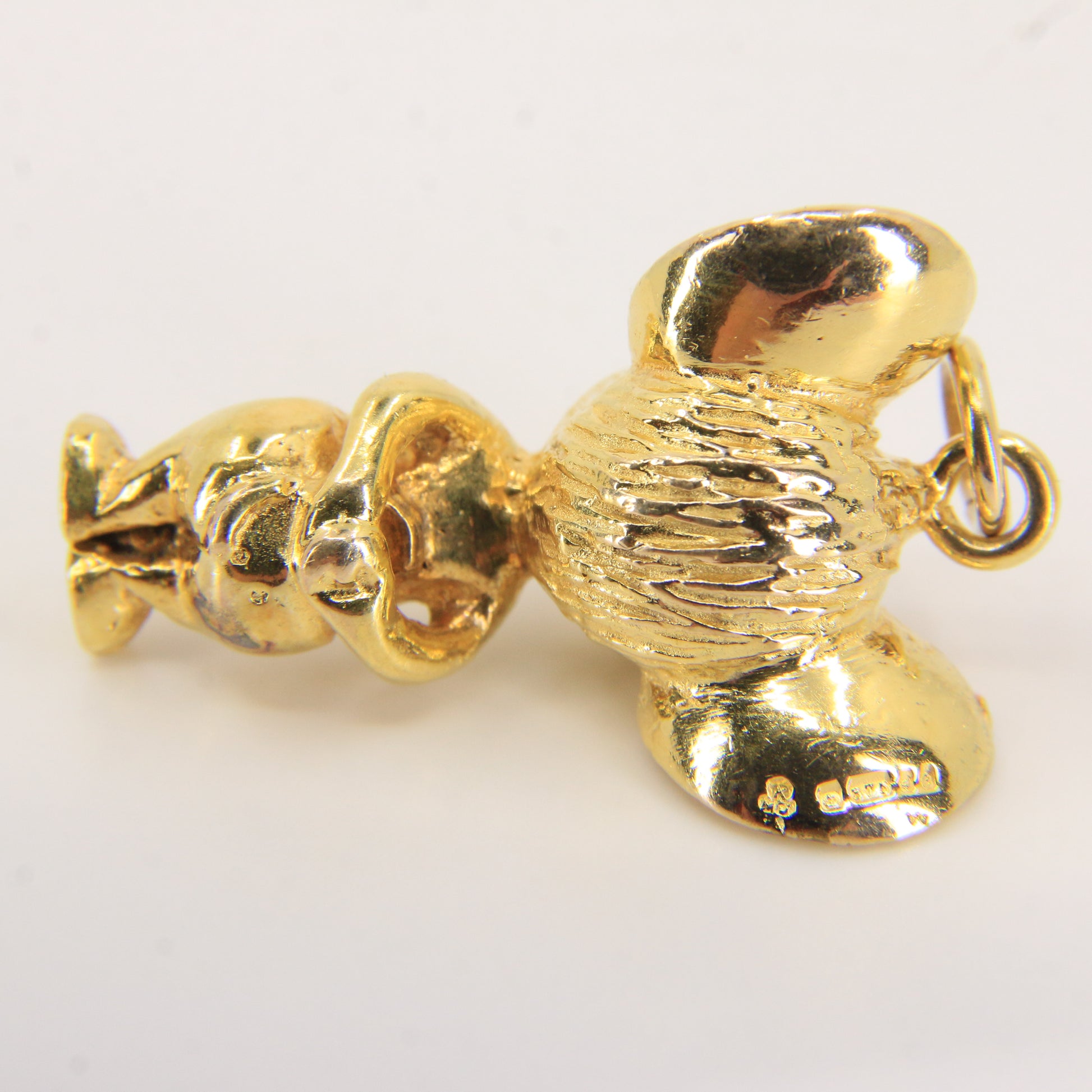 A vintage 9ct yellow gold hallmarked pendant charm depicting Jerry from the classic Tom and Jerry cartoon. A playful and collectible piece of jewellery, perfect as a gift or addition to a charm bracelet.