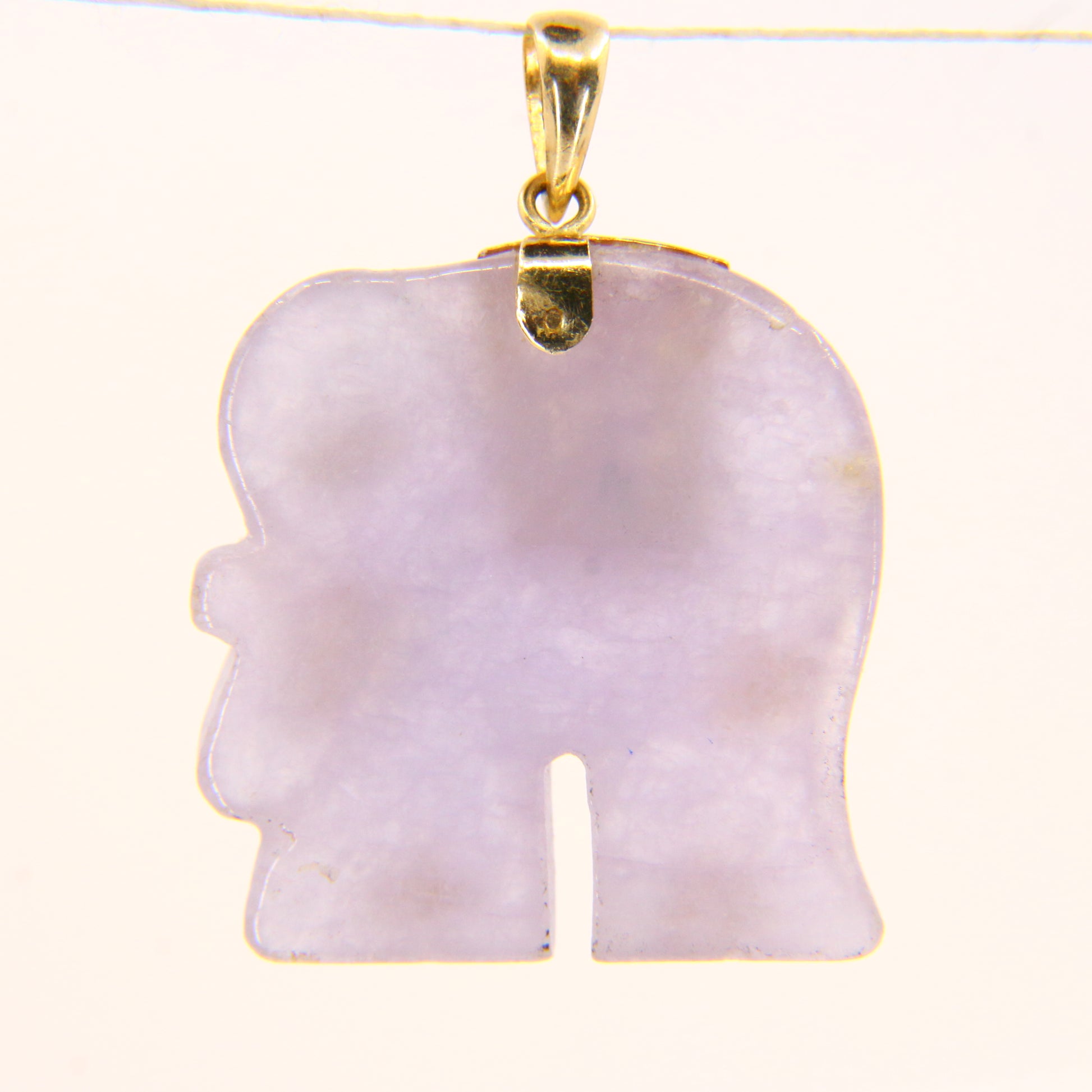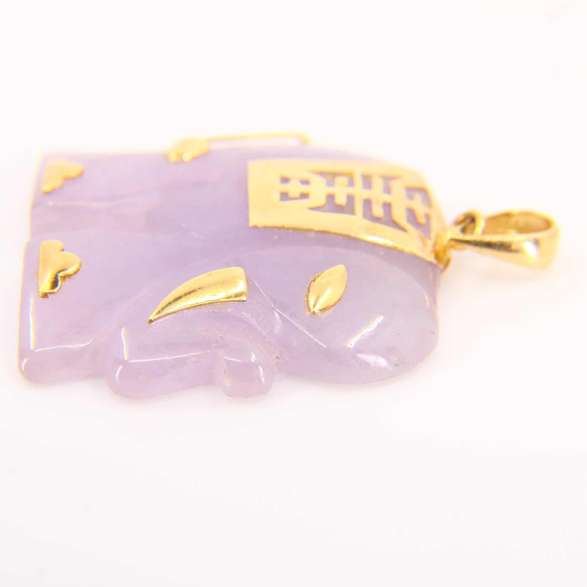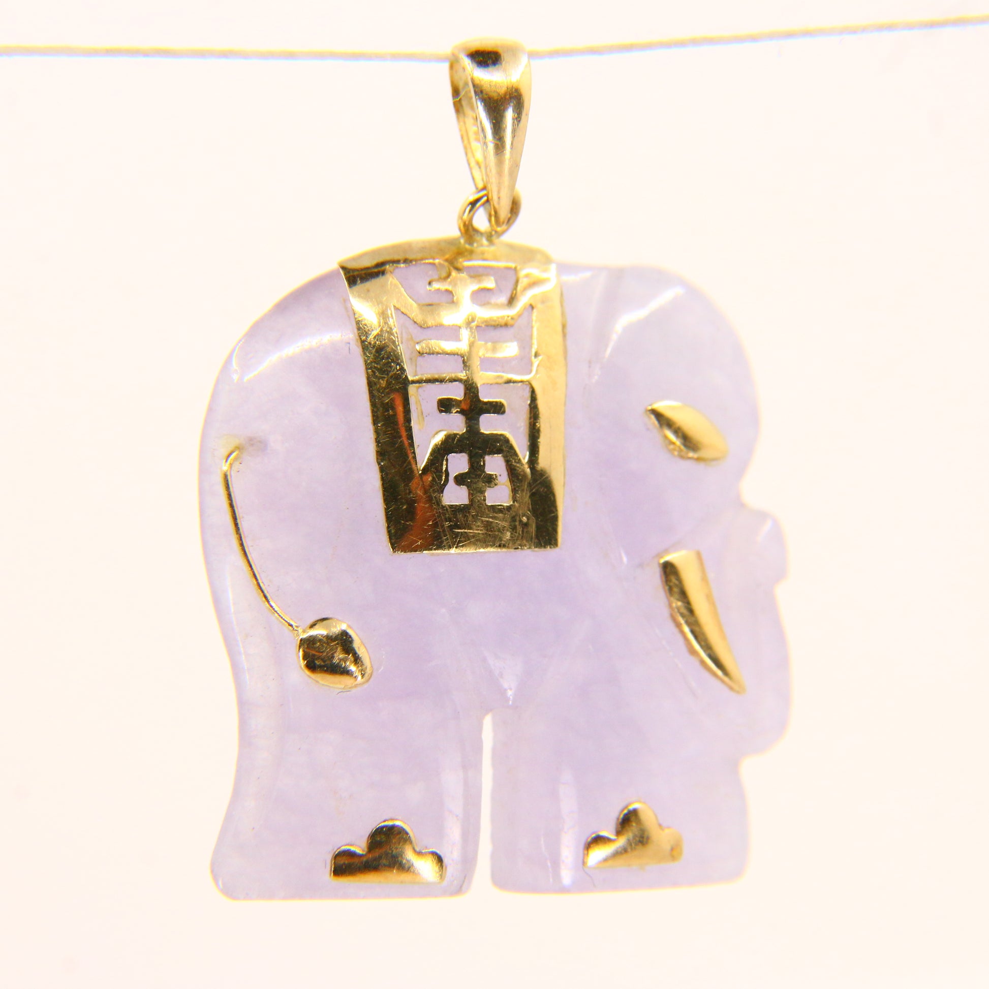 Vintage Quartz Elephant Pendant 14k Gold Mounted Purple Elephant Trunk Up Hand Picked Fine Jewellery Gift Pendant Yellow Gold