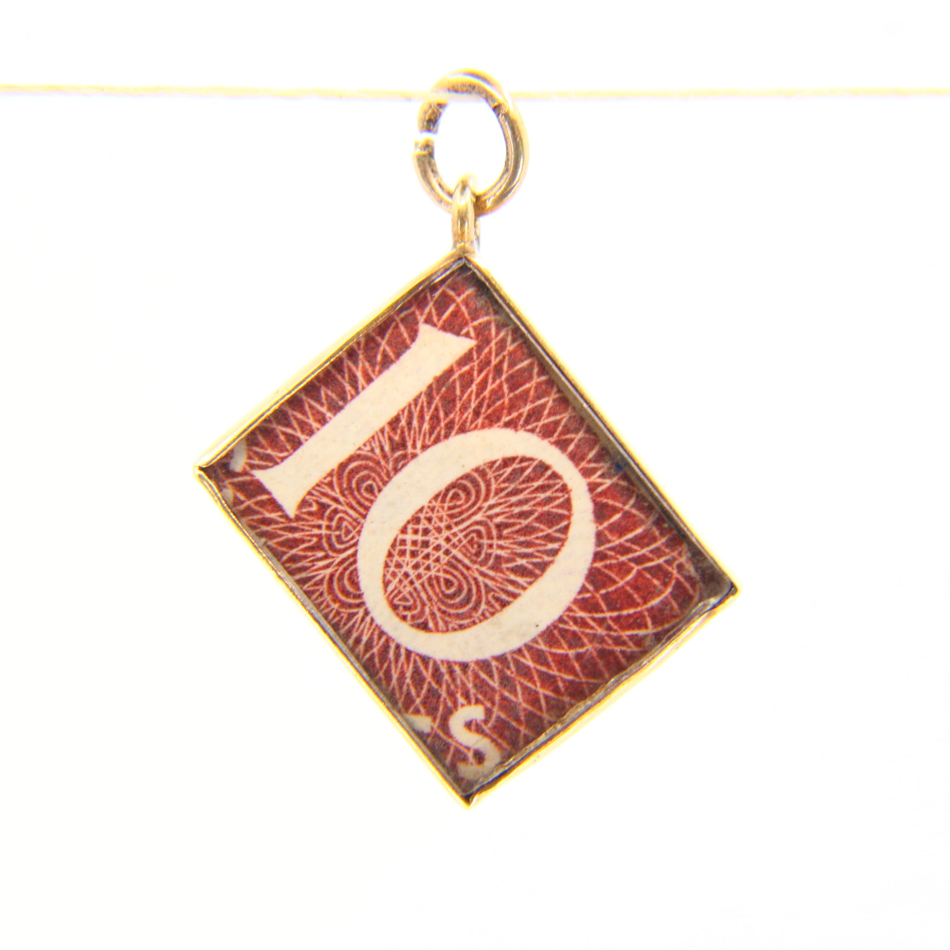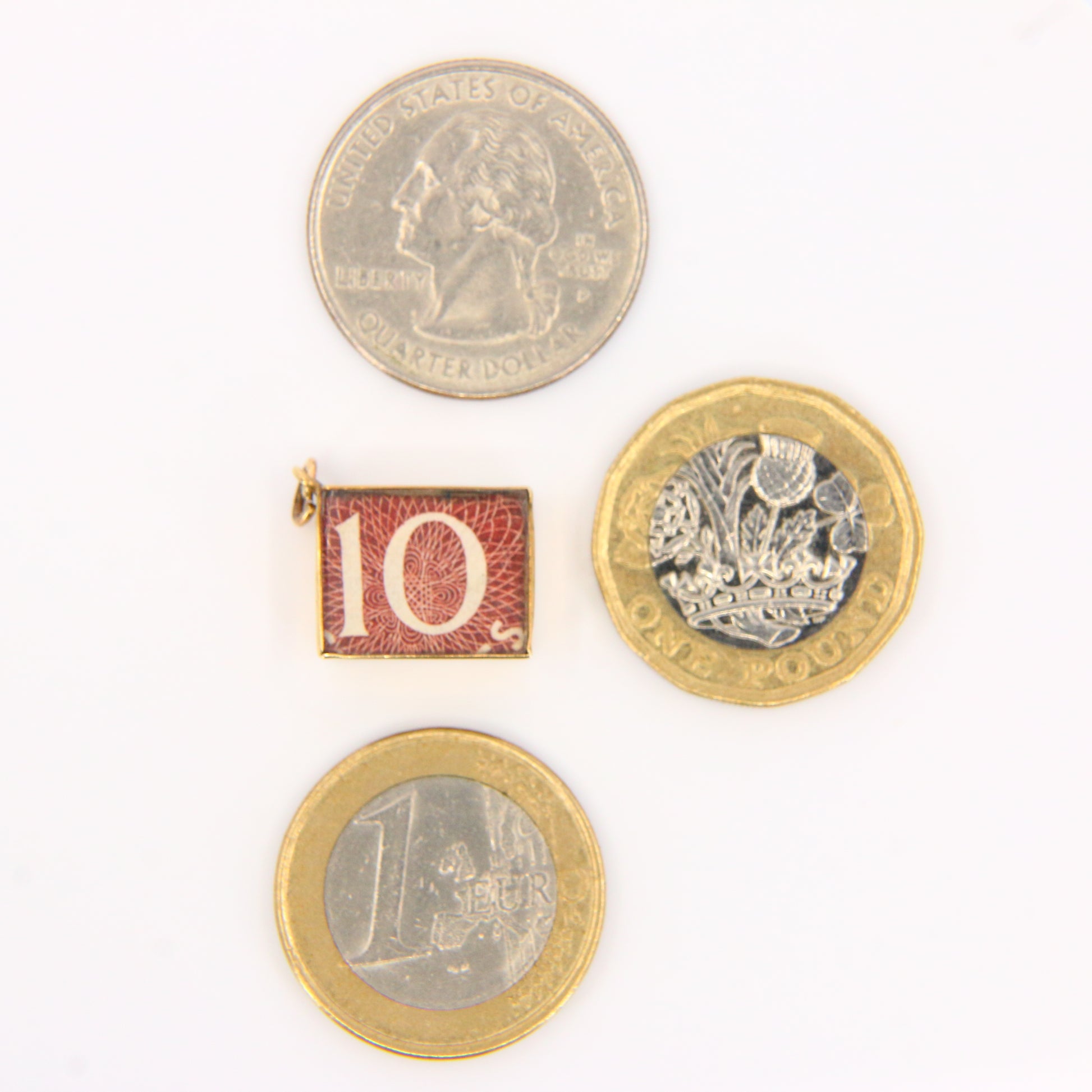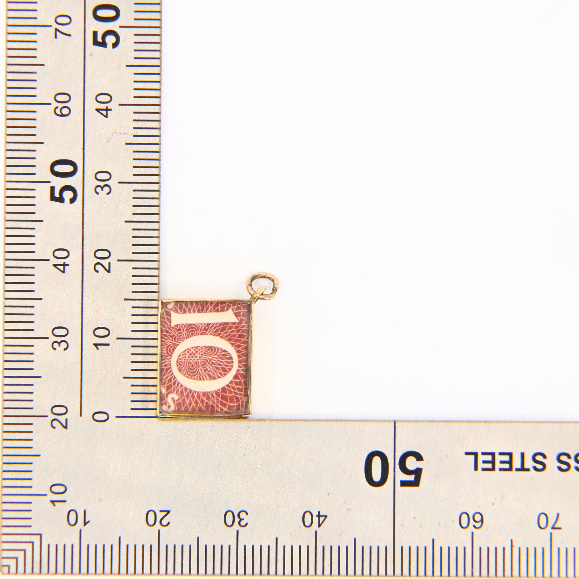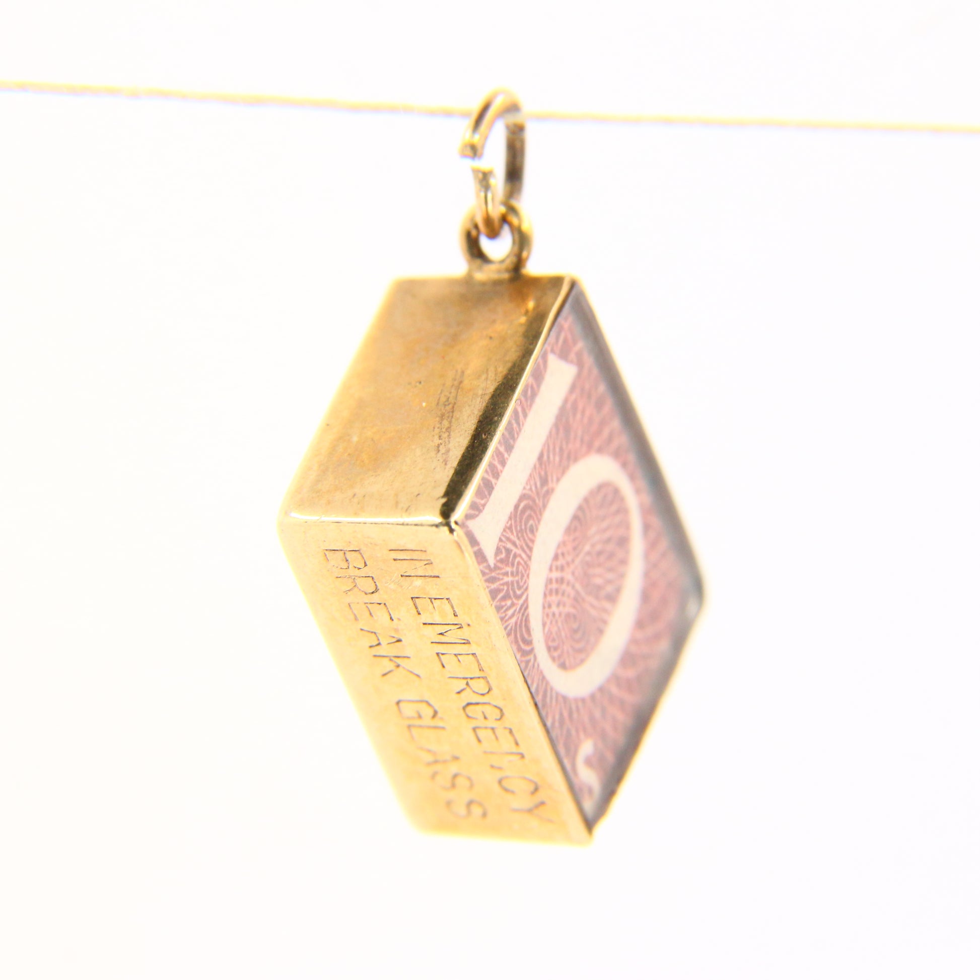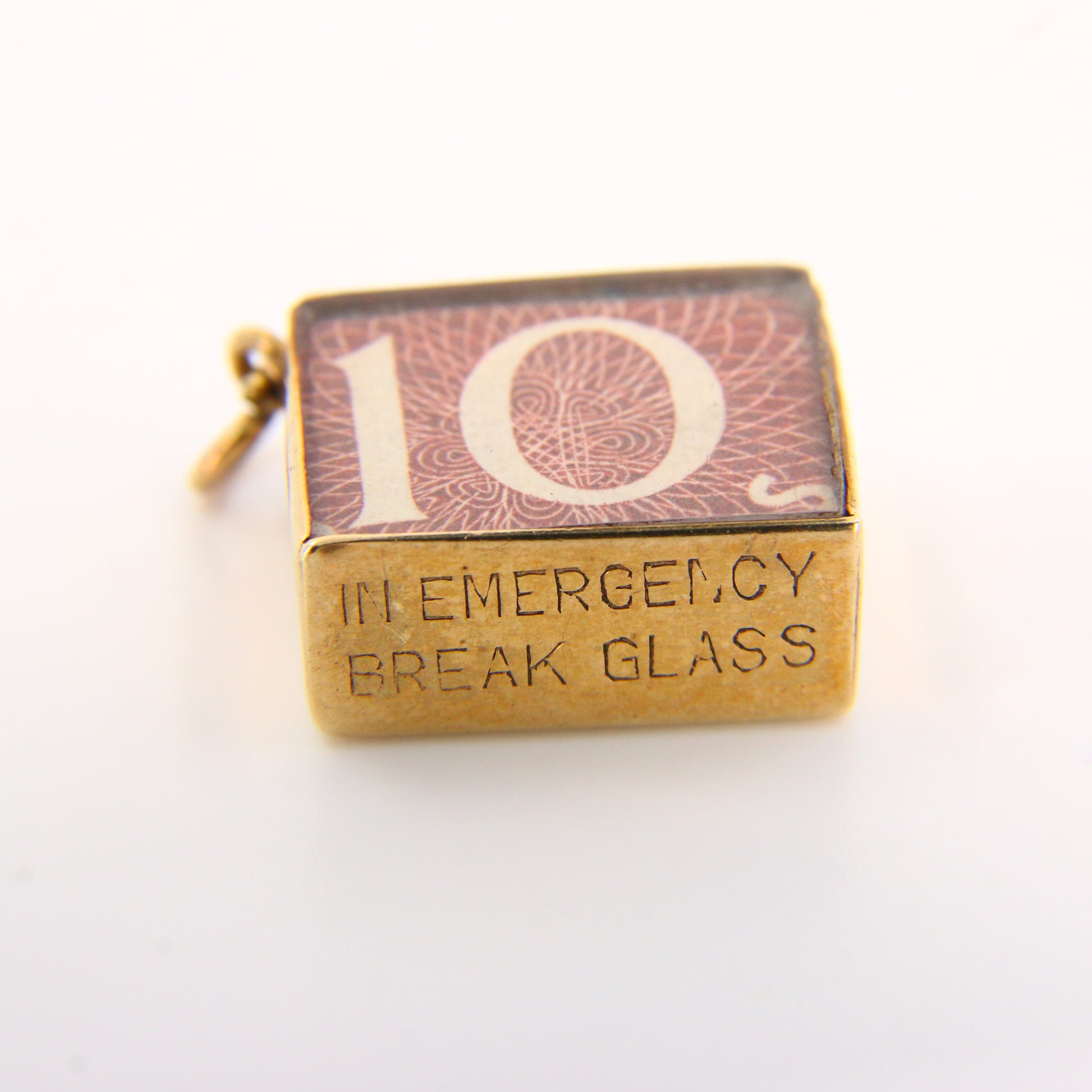 Vintage Ten Bob Emergency Break Glass Gold Charm 10 Shilling Pendant Hallmarked