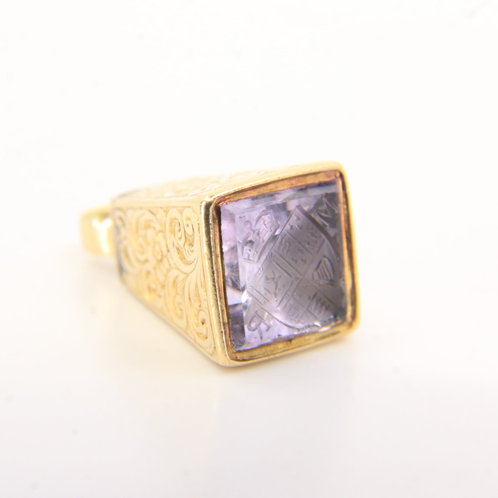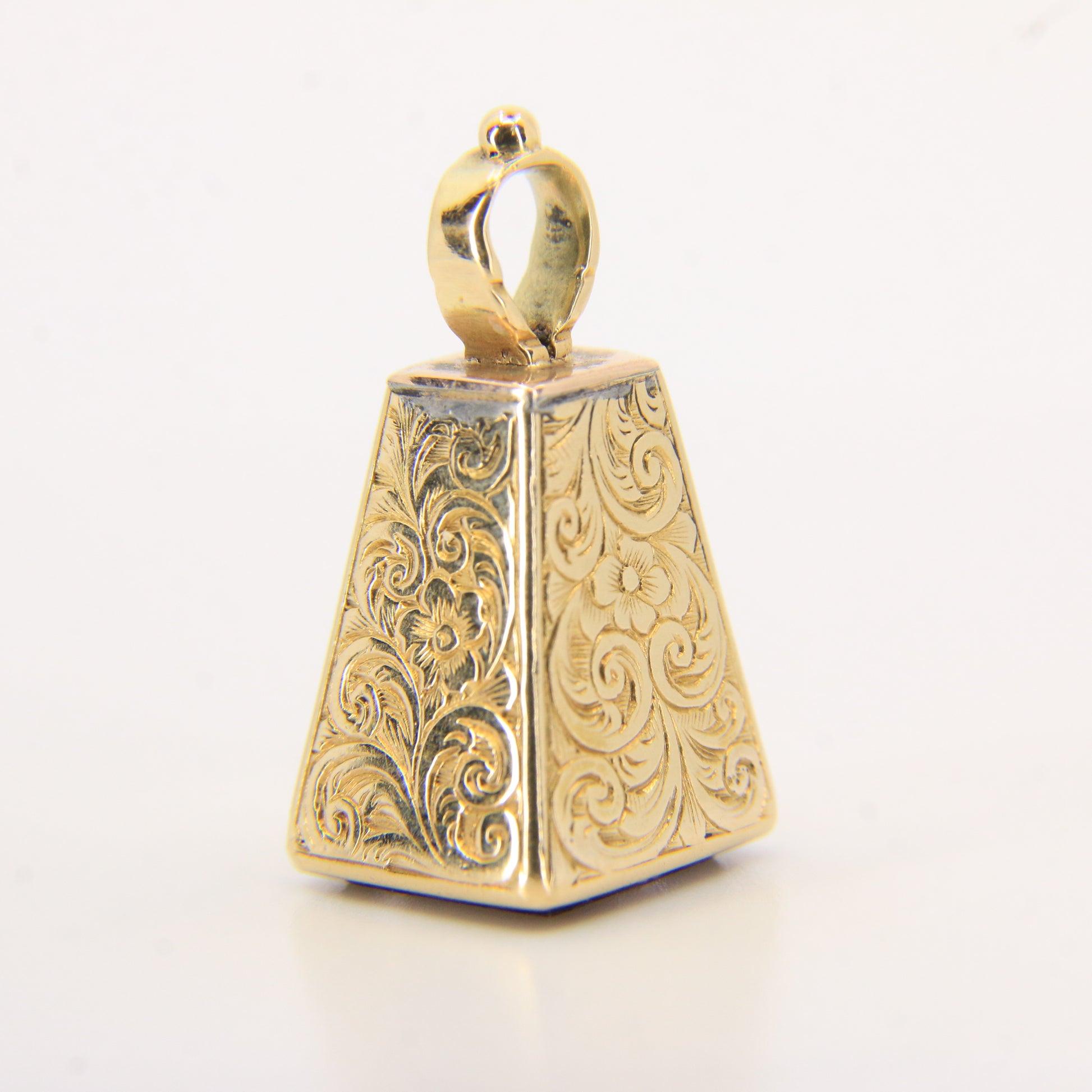Antique 15ct yellow gold fob seal pendant featuring an engraved intaglio crest, traditionally used for sealing wax and personal correspondence. A classic collector’s piece with detailed scrollwork and strong historical appeal, add this to your collection today.